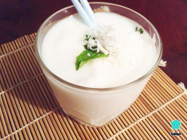 - Sirve el batido de leche de coco muy frío, espolvoreando coco rallado.