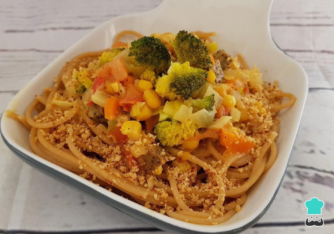 Rinde para 2 comensales. Consulta todos los detalles de la receta: "Receta de pasta con verduras y leche de coco".
