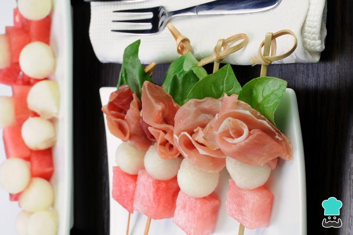 - Brochetas de sandía, melón y jamón