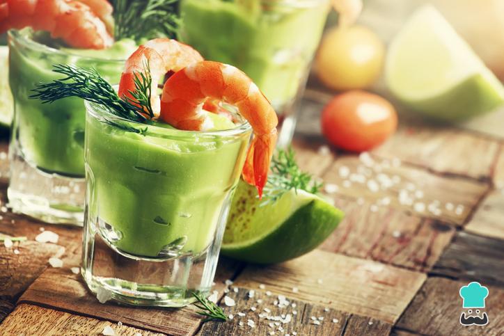 - Chupitos de crema de aguacate y langostinos
