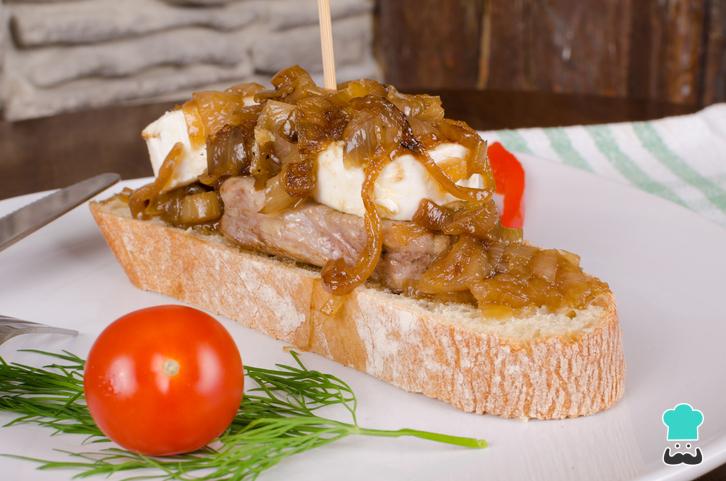 - Queso de cabra crujiente con cebollas caramelizadas
