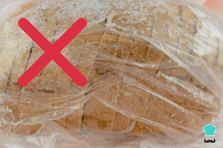 - Colocarlo en una bolsa de plástico. Este tipo de bolsa no permite que el pan respire, así la humedad del mismo se condensa y produce hongos.