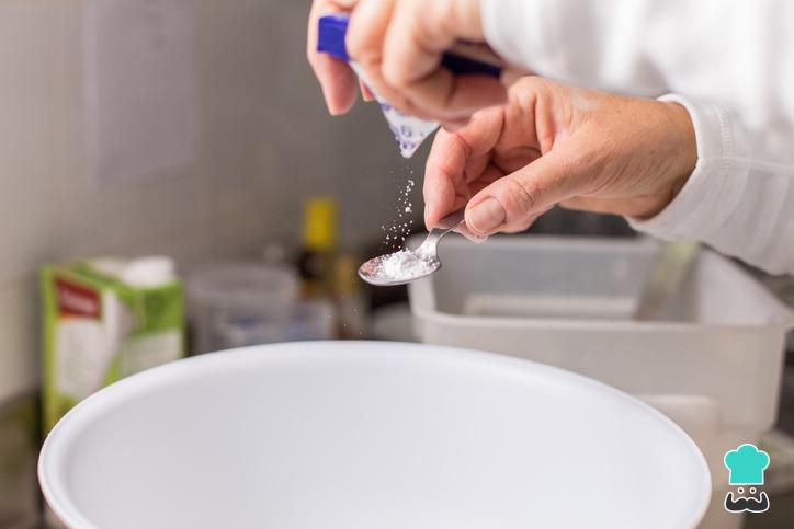 Consejo: Puedes usar sal de frutas como impulsor, añade la misma cantidad que agregarías de bicarbonato, y un producto ácido.