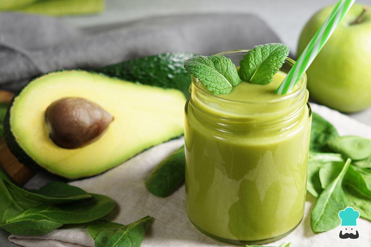 Licuado verde con espinaca, plátano, aguacate y proteína vegetal