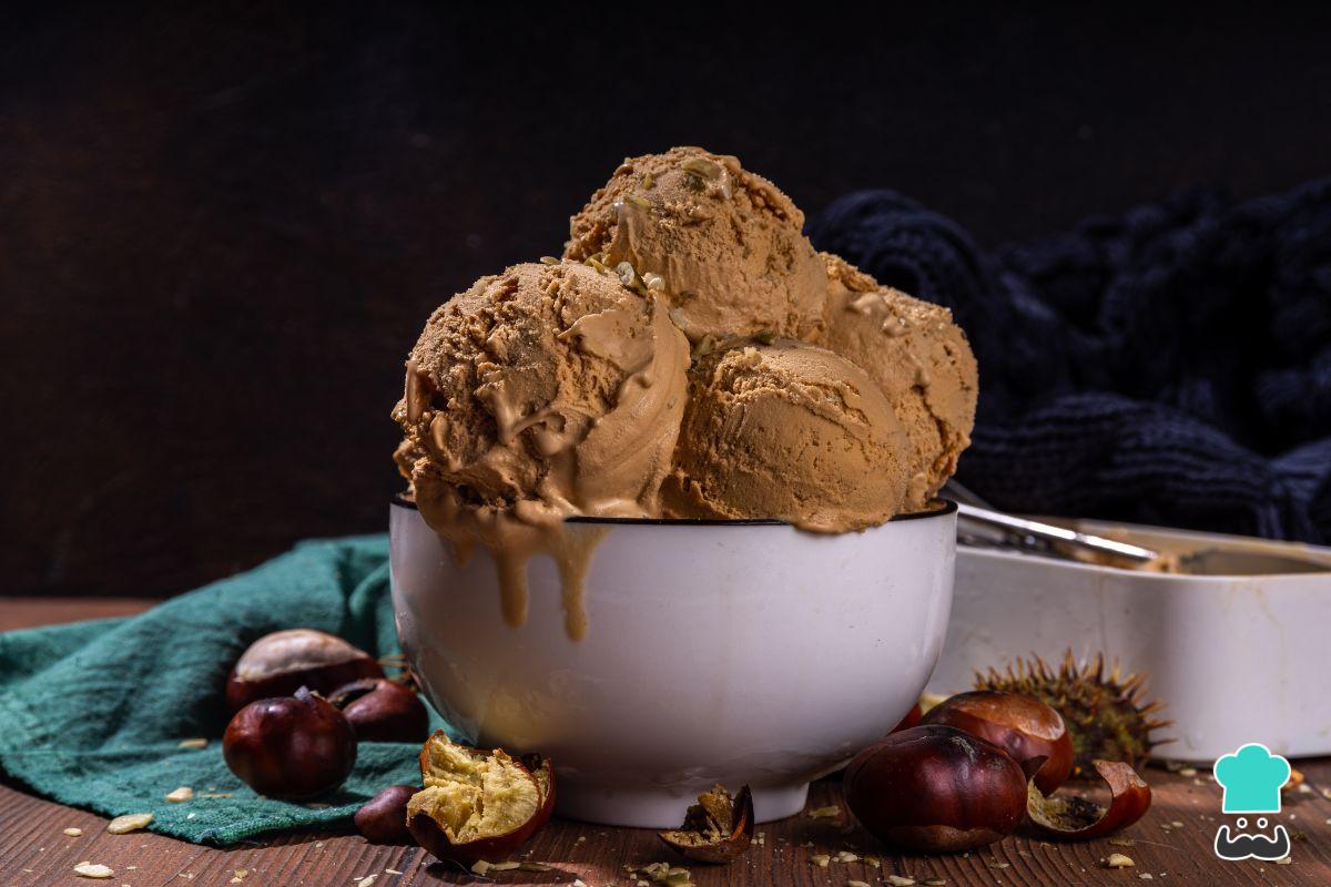 ¿Quién dijo que en otoño no se puede disfrutar de un rico helado? Te proponemos acabar tu comida con un delicioso helado de castañas, que podrás preparar tanto con heladera como sin ella y, además, podrás usarlo tanto para acompañar tu tarta de castañas de la abuela, el bizcocho de castañas y yogur o disfrutarlo simplemente acompañado de un chorrito de miel o chocolate caliente. Para prepararlo tendrás que elaborar una crema inglesa a la que le añadirás puré de castañas y nata. Luego deberás dejar enfriar la mezcla en el frigorífico por los menos 4 horas y finalmente congelar la mezcla para obtener tu helado. Un postre de castañas fácil, sutil y delicioso.