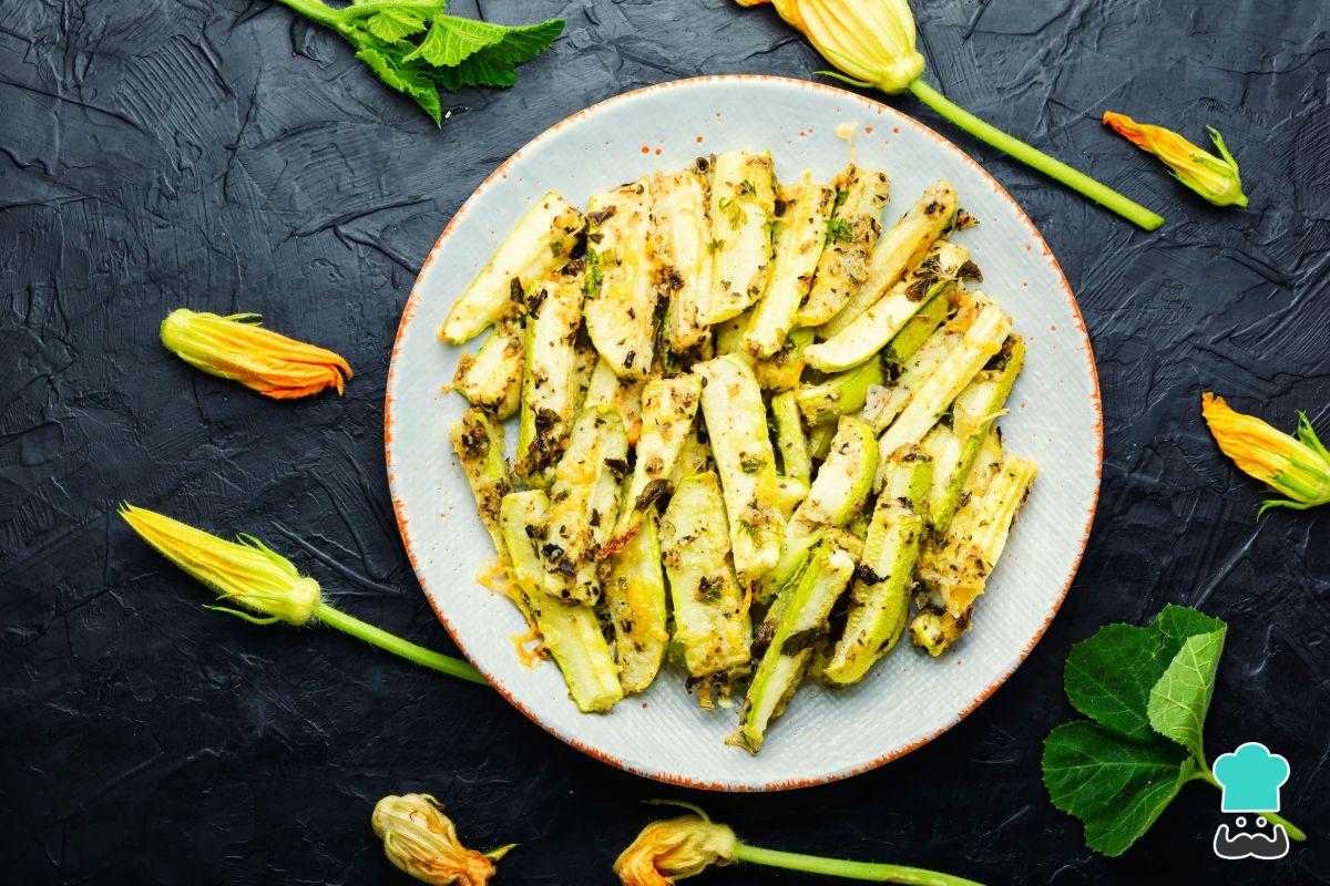 - Lava el calabacín y córtalo a tiras o bastoncillos. (Puedes retirar o dejar la piel según tu gusto).
