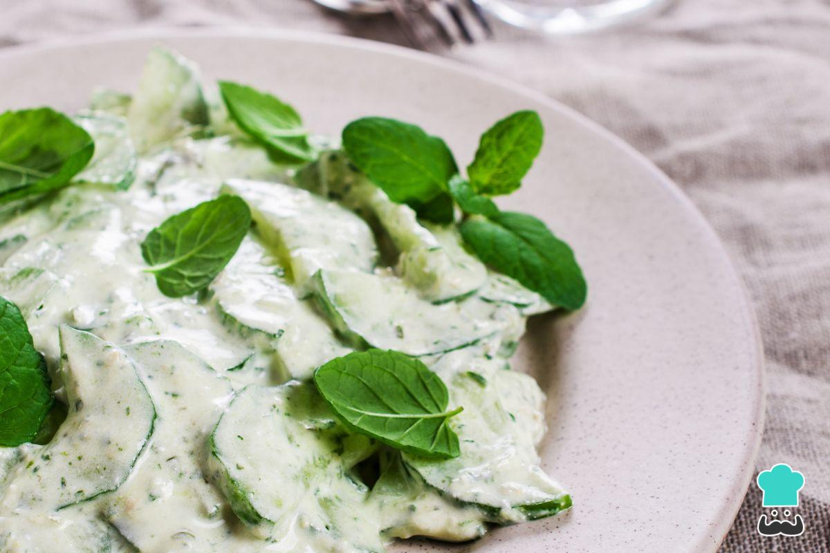 Frescura y cremosidad se unen en esta ensalada de pepino con yogur y hierbabuena, otra opción perfecta para disfrutar del sabor de la planta y su efecto refrescante. Este entrante o cena ligera cuenta con un efecto digestivo y es baja en calorías. Un claro ejemplo de cómo usar la hierbabuena en la cocina para realzar los sabores de cualquier plato.