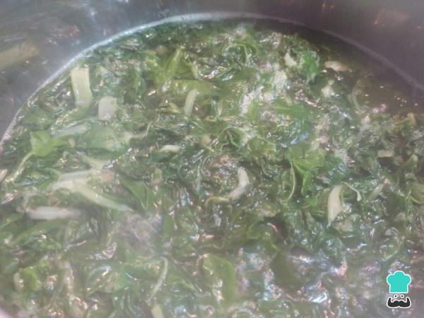 Se lavan bien las acelgas, se cortan en trozos y se ponen a hervir con abundante agua y una pizca de sal en una olla o cacerola.