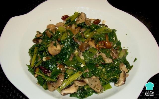 Cómo hacer Acelgas esparragadas con jamón serrano y setas: