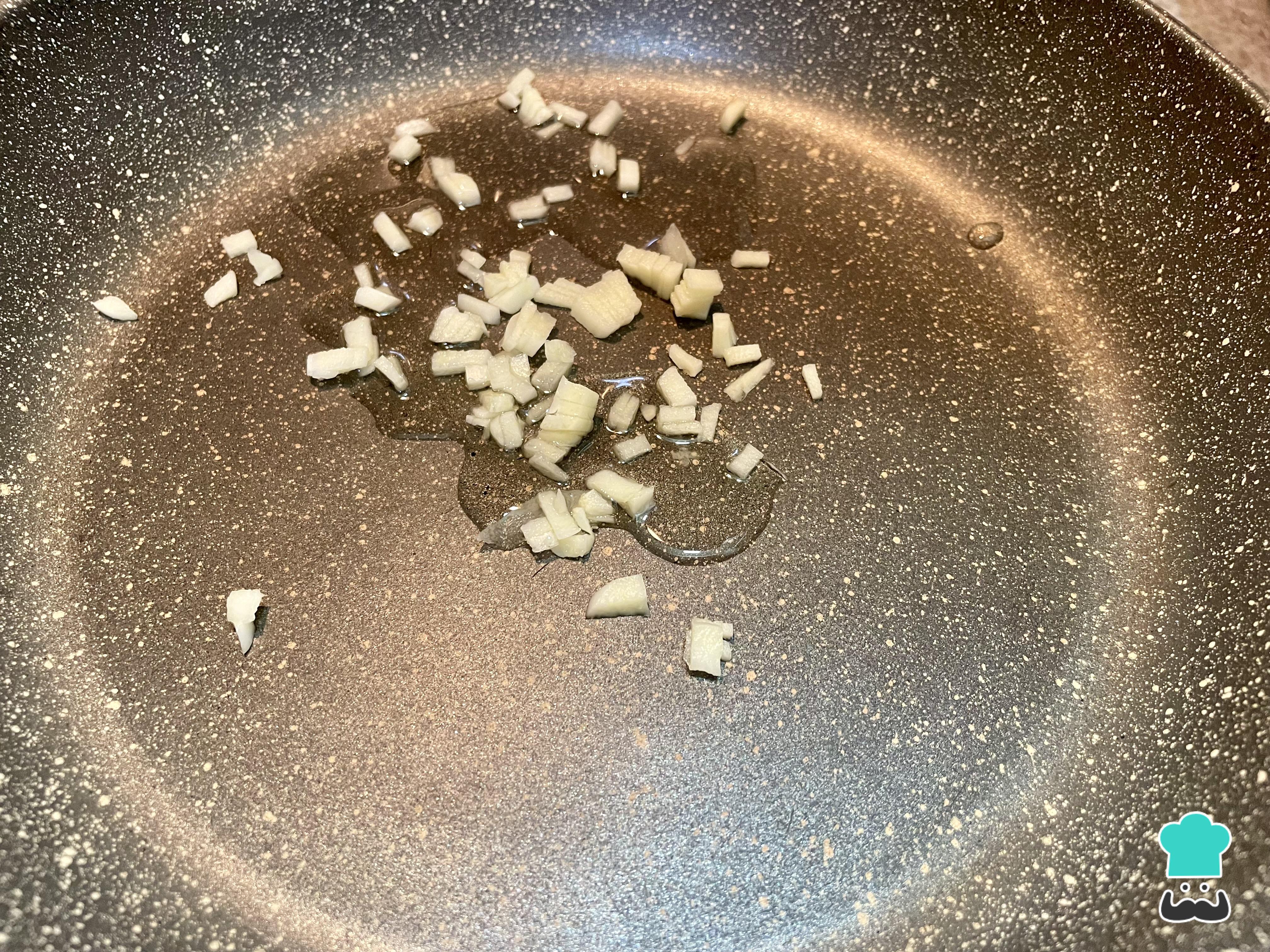 Pela y pica finamente el ajo. Llévalo a una sartén con un poco de aceite y sofríelo durante unos segundos hasta que empiece a soltar su aroma.