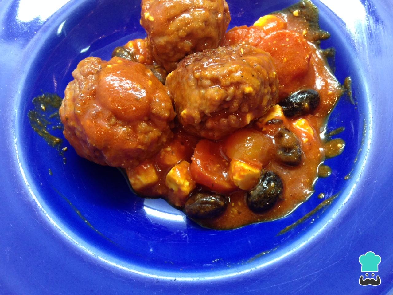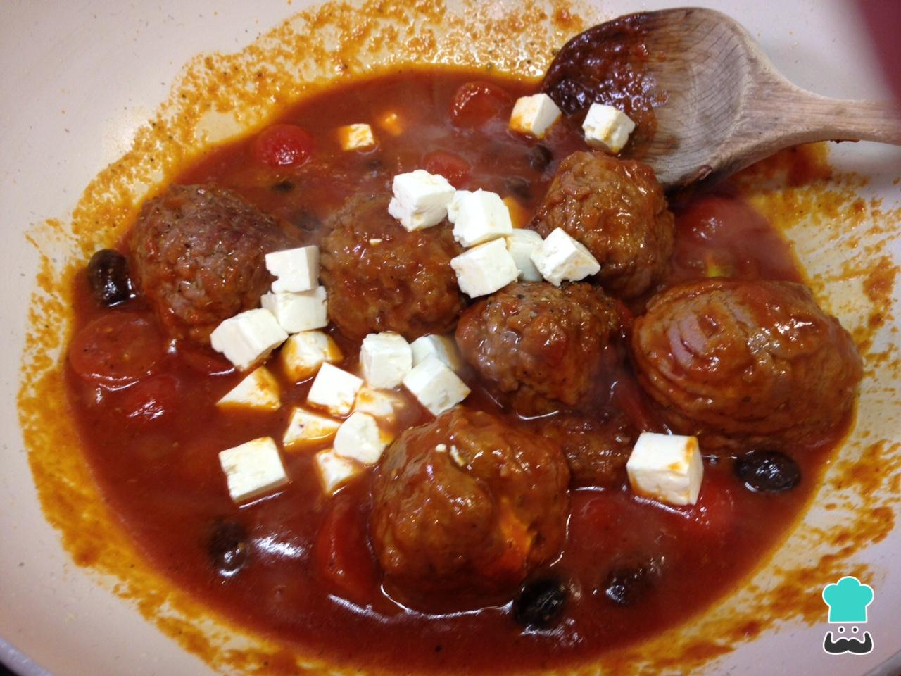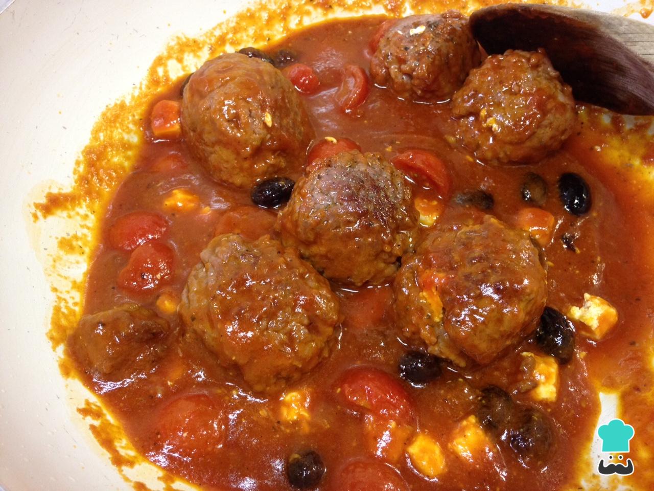En RecetasGratis.net estamos creativos y hemos inventado estas deliciosas albóndigas caseras rellenas de queso feta y con salsa de tomate, feta y aceitunas negras, al más puro estilo griego. Las albóndigas griegas conforman un exquisito primer plato que seguro que añadirás a tu libro de recetas.