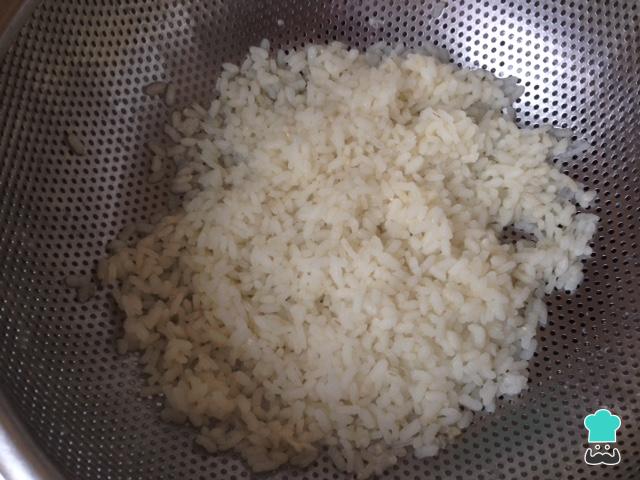 En primer lugar, cocemos el arroz en abundante agua hirviendo con un poco de sal. Una vez cocido lo escurrimos y reservamos.