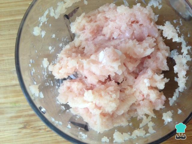Picamos la pechuga de pollo en una picadora o bien podemos pedir que la piquen en la carnicería.