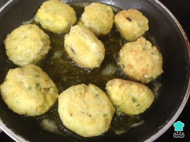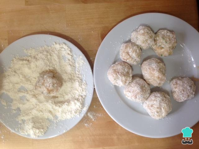 Formamos las albóndigas y las rebozamos con pan rallado hasta cubrirlas por completo.