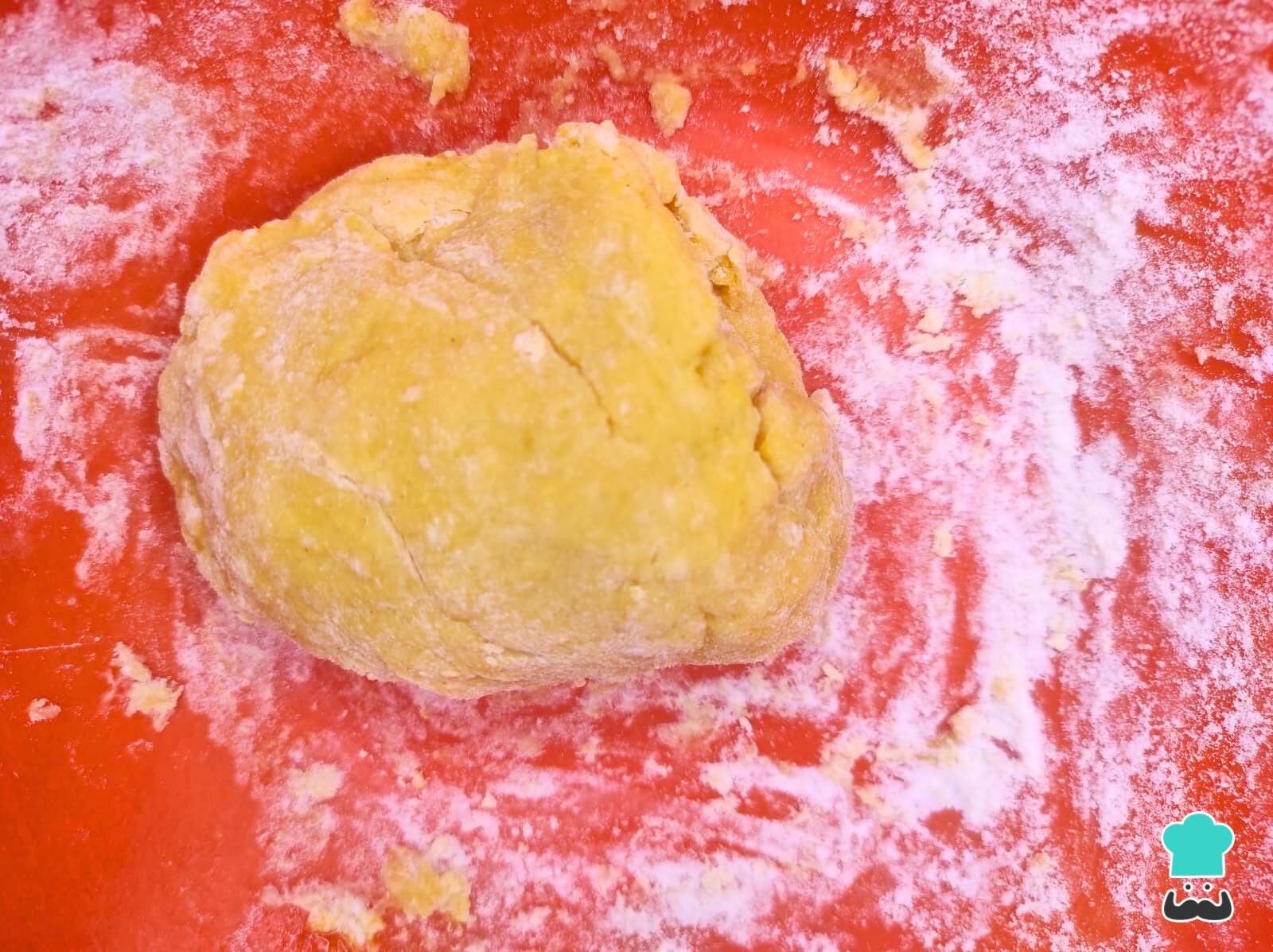 Mezcla y amasa con las manos hasta obtener una masa manejable que no se pegue en las manos.