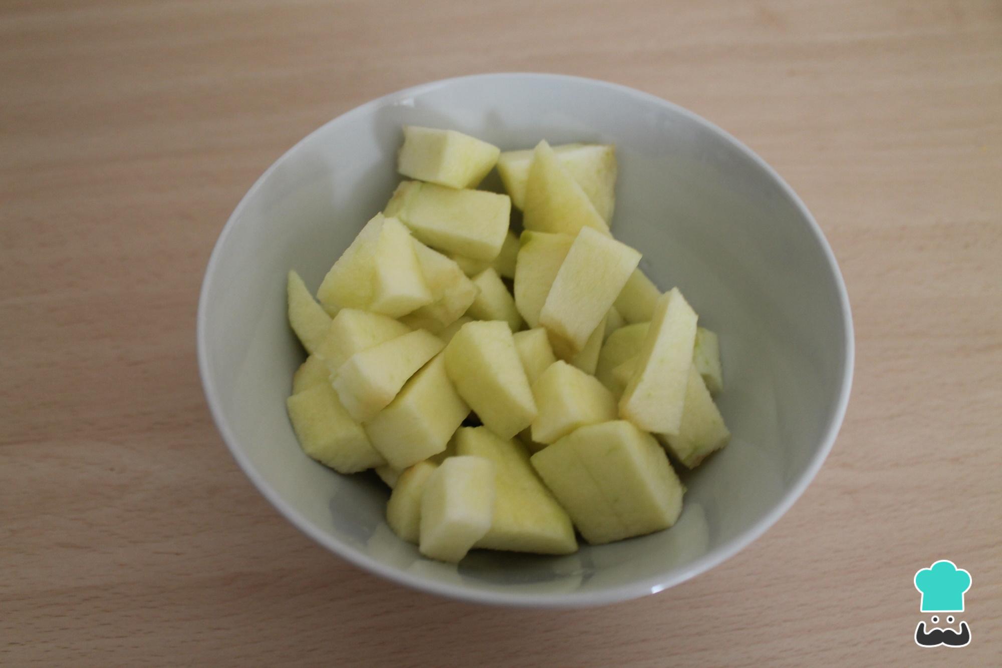 Truco: también puedes cocer los dados de manzana en un cazo con agua al fuego tradicional hasta que la manzana quede un poco tierna.