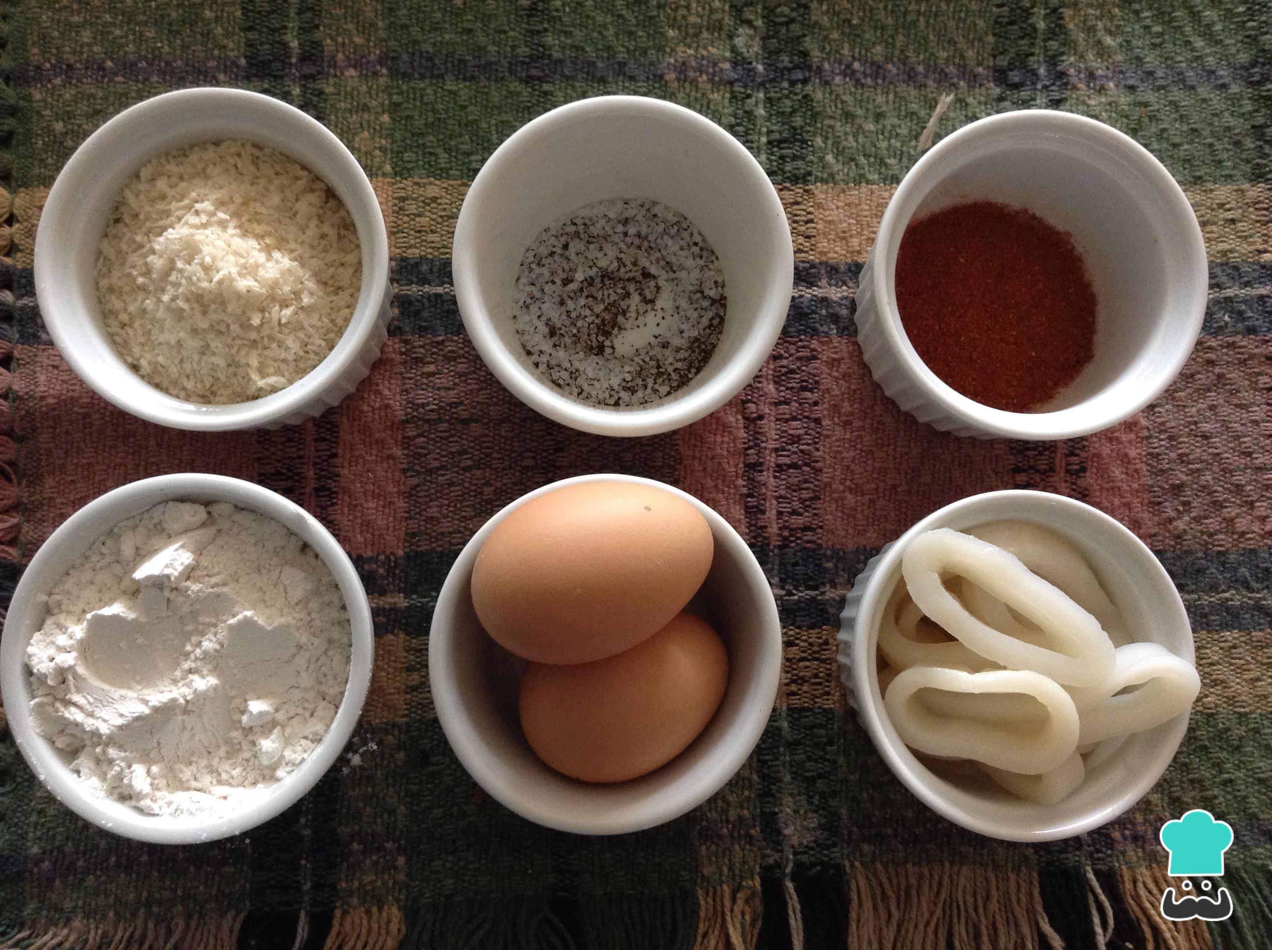 Pasar los anillos de calamar primero por la harina del paso dos, segundo por los huevos y tercero por el panko.Reservarlos en un plato.