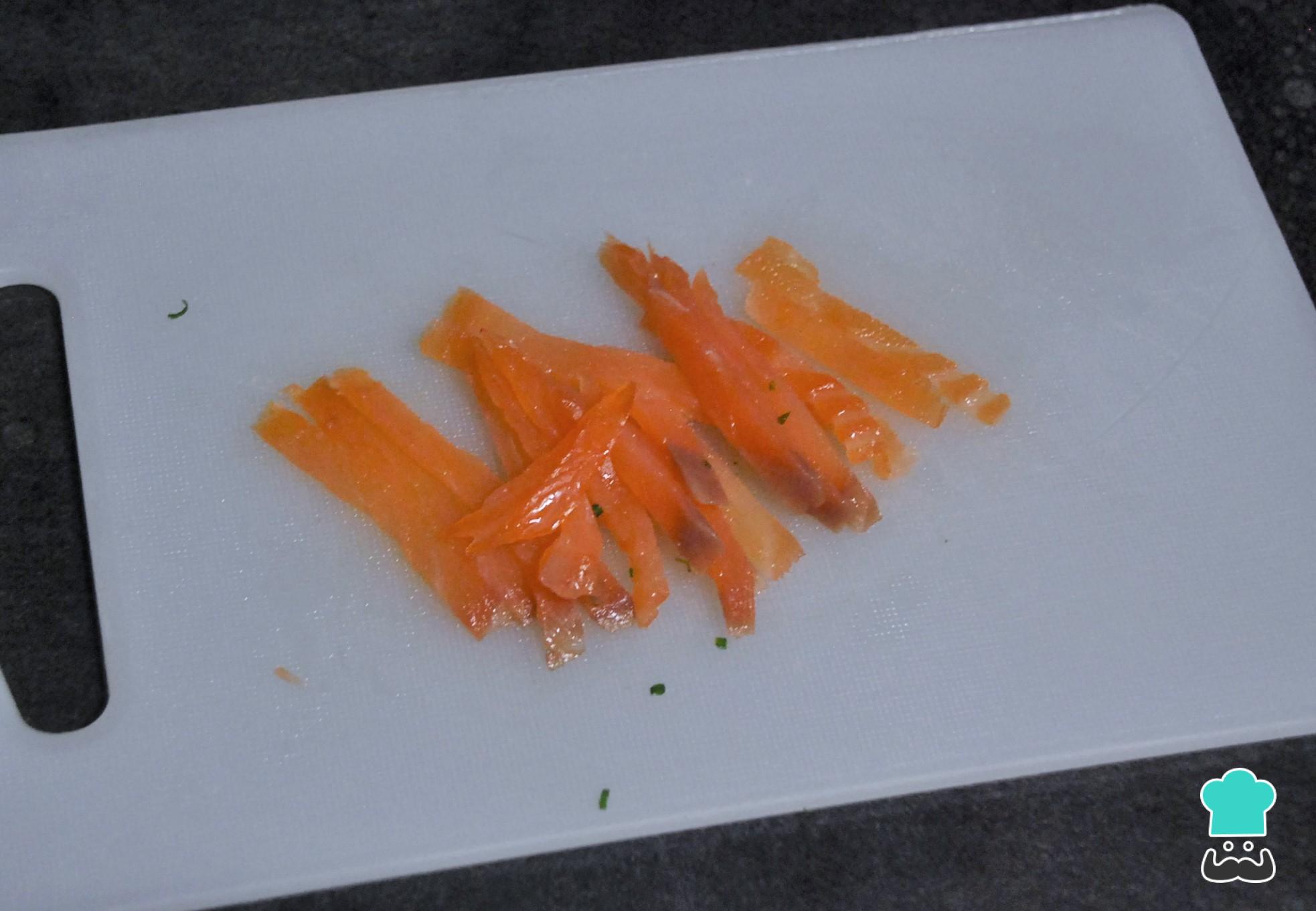 Si quieres puedes mezclar el cebollín con un poco de aceite de oliva o si prefieres un sabor más suave puedes usar eneldo, una hierba que también combina perfectamente con el salmón ahumado.