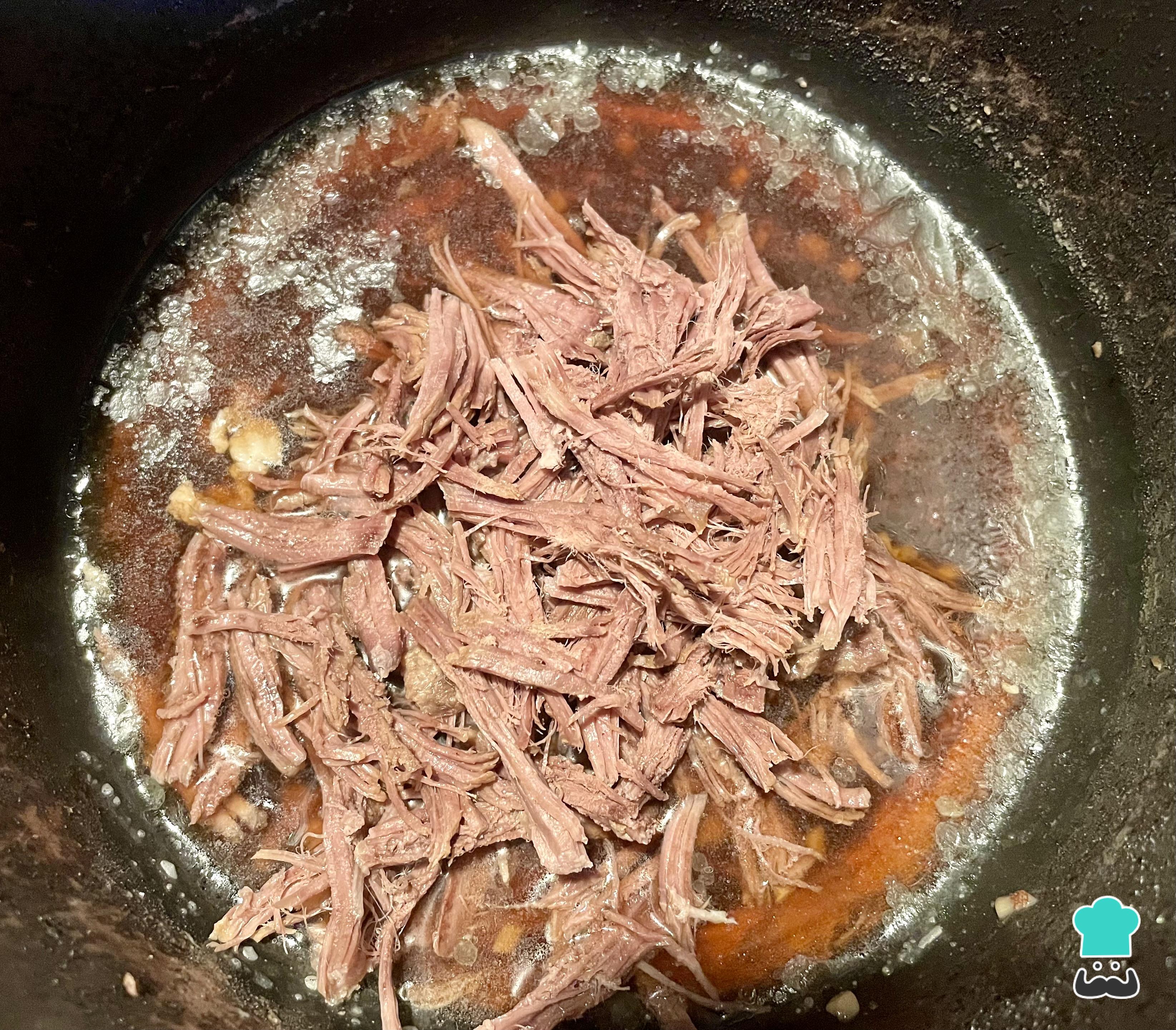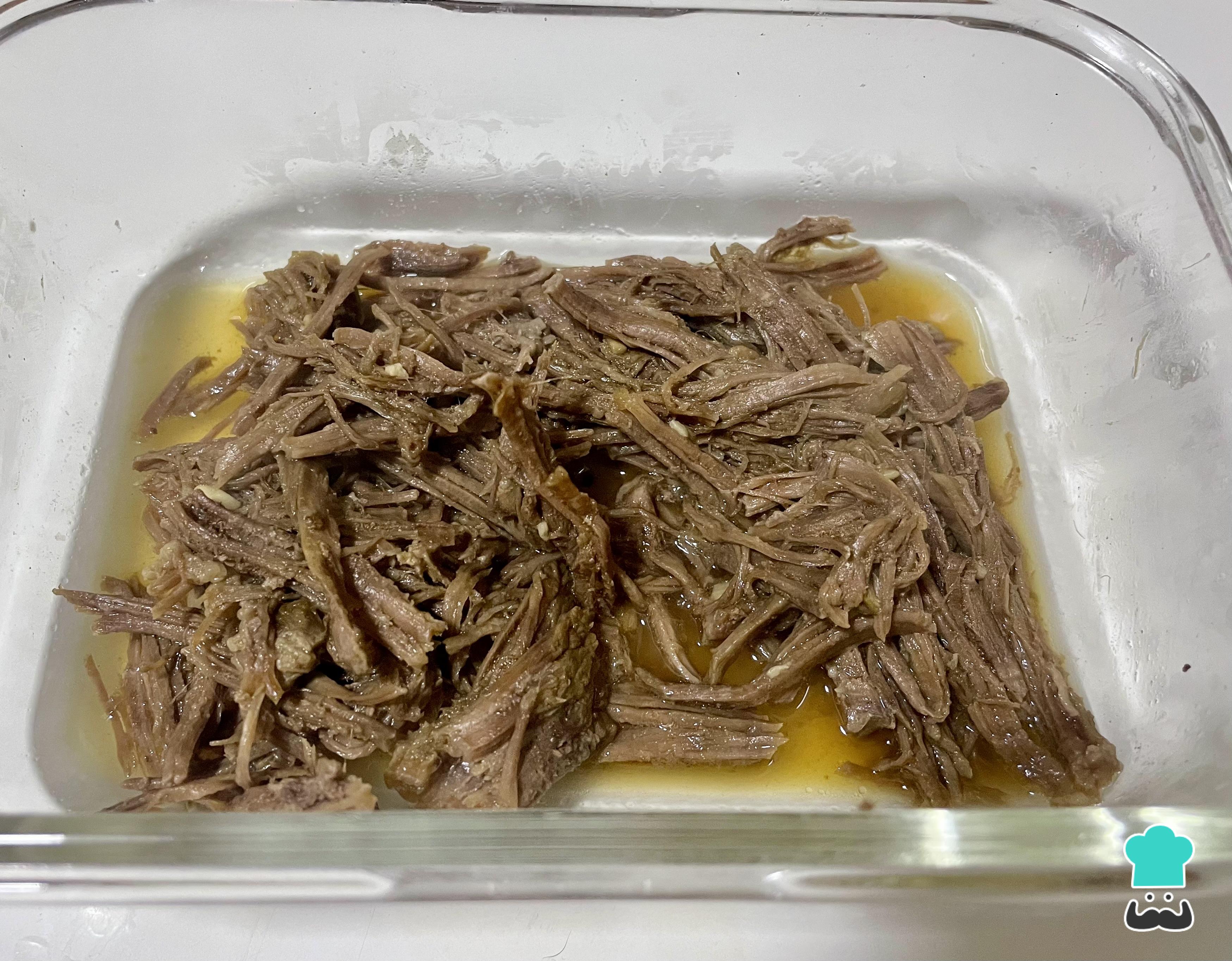 - Usa siempre carne mechada recién hecha, absorberá mejor los jugos.