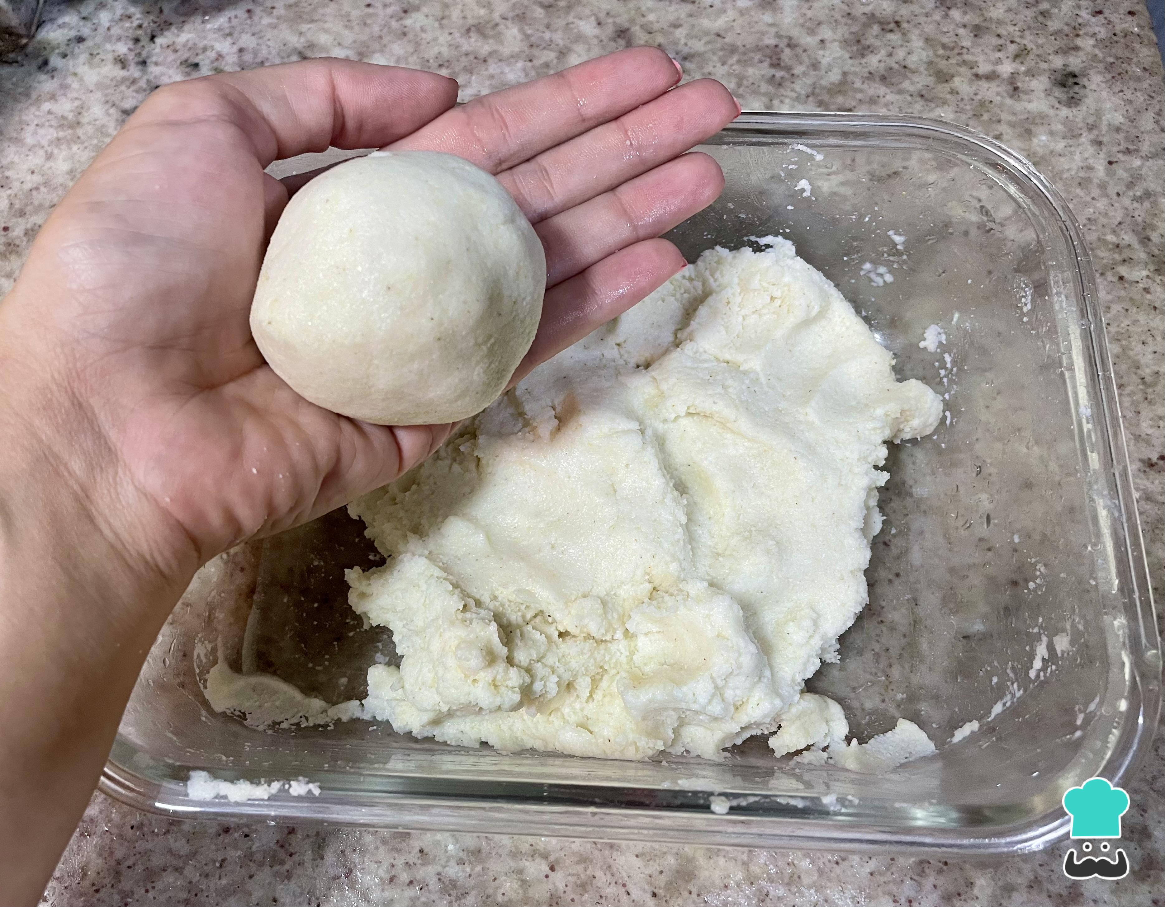 Forma una bola y aplánala en un disco grueso. Luego, fríe la arepa en una sartén con un poco de aceite caliente, dorándola por ambos lados.