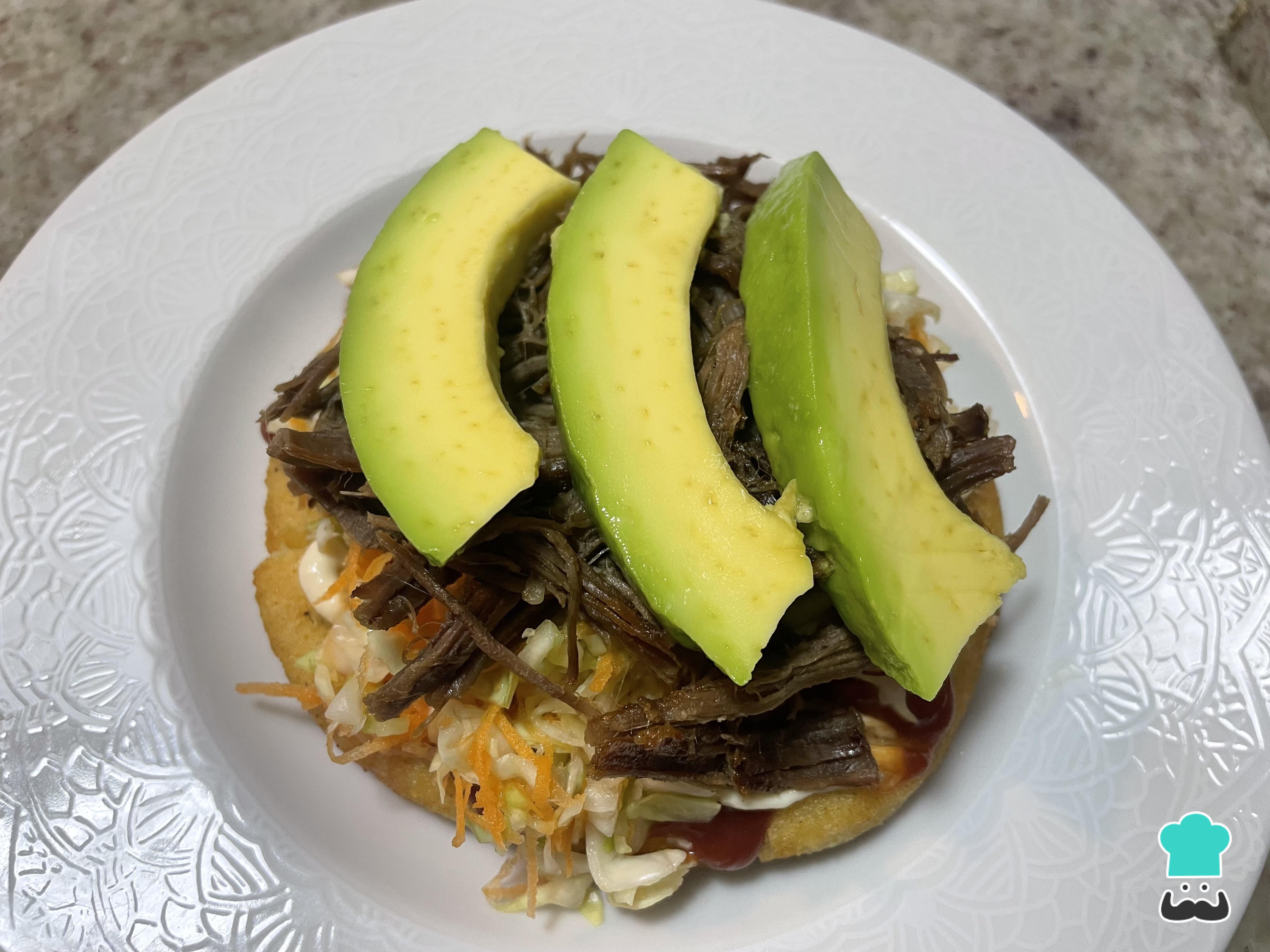 Coloca ensalada rallada, luego carne mechada, trozos de aguacate y, si quieres, jamón, queso y huevo. ¡Y ya está! Cuéntanos en los comentarios cómo te quedó y no olvides subir una foto de tu plato para inspirar a otros cocineros. ¡Buen provecho!