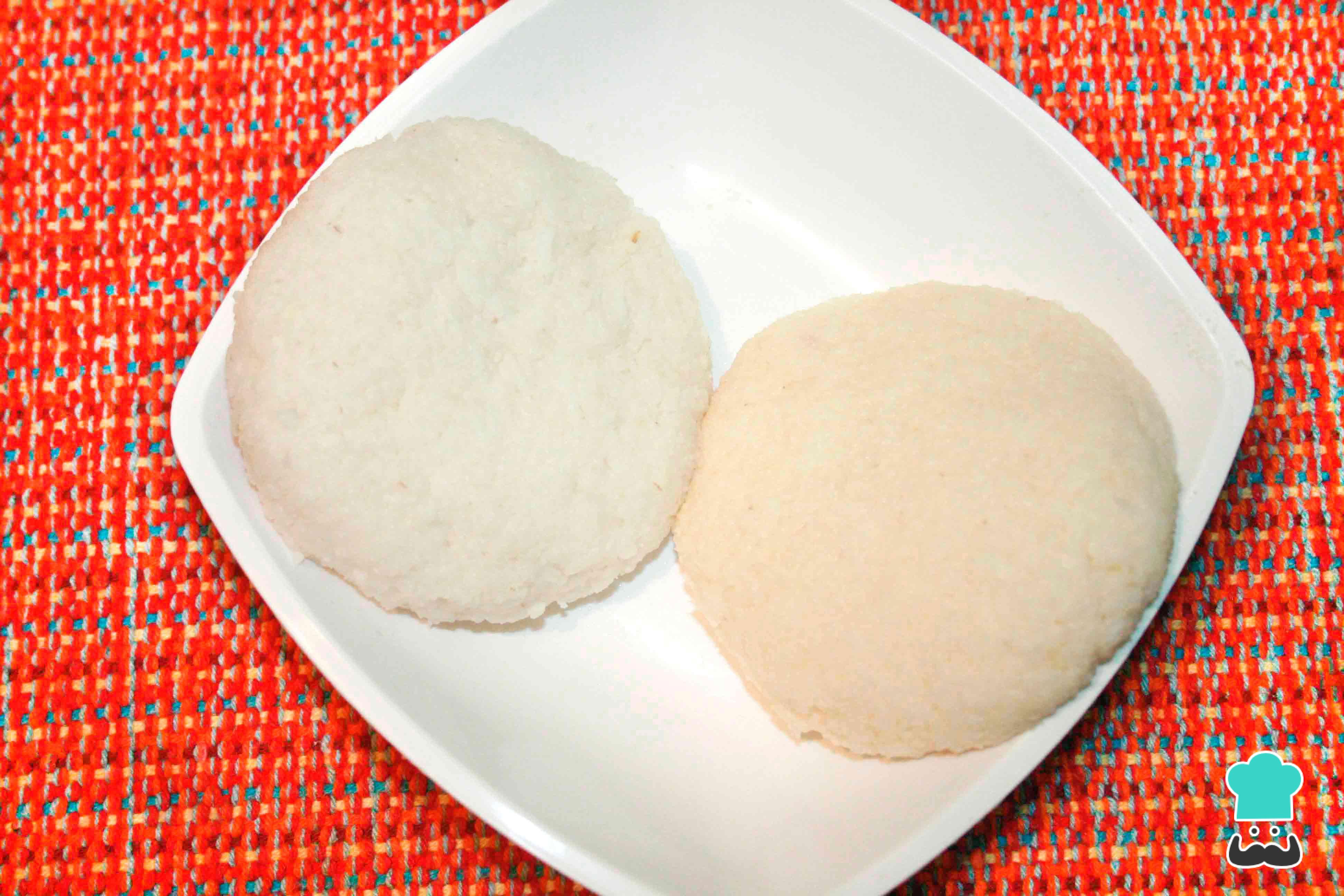 A cada bolita dale forma de disco y colócalas en un plato. Como puedes observar, la arepa de arroz sin huevo es muy blanca y la arepa de arroz con huevo es algo amarilla. Si te preguntabas ¿cómo preparar arepas de arroz sin harina? ¡Ya tienes la respuesta!