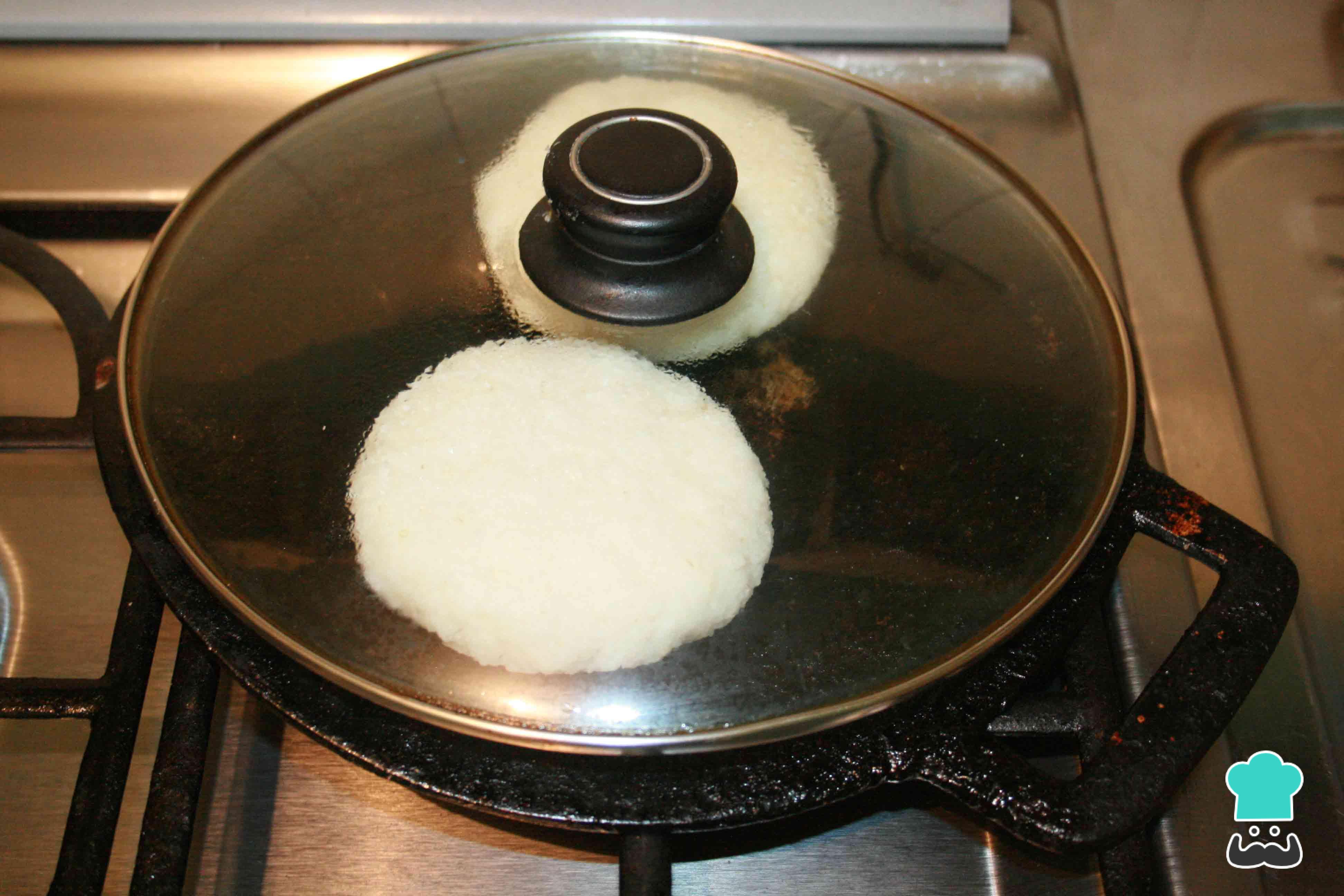 ¡Ahora a cocinar las arepas sin harina! Coloca en una sartén bien caliente las arepas de arroz, dale vuelta y vuelta, yeEspera 8 minutos por cada lado.
