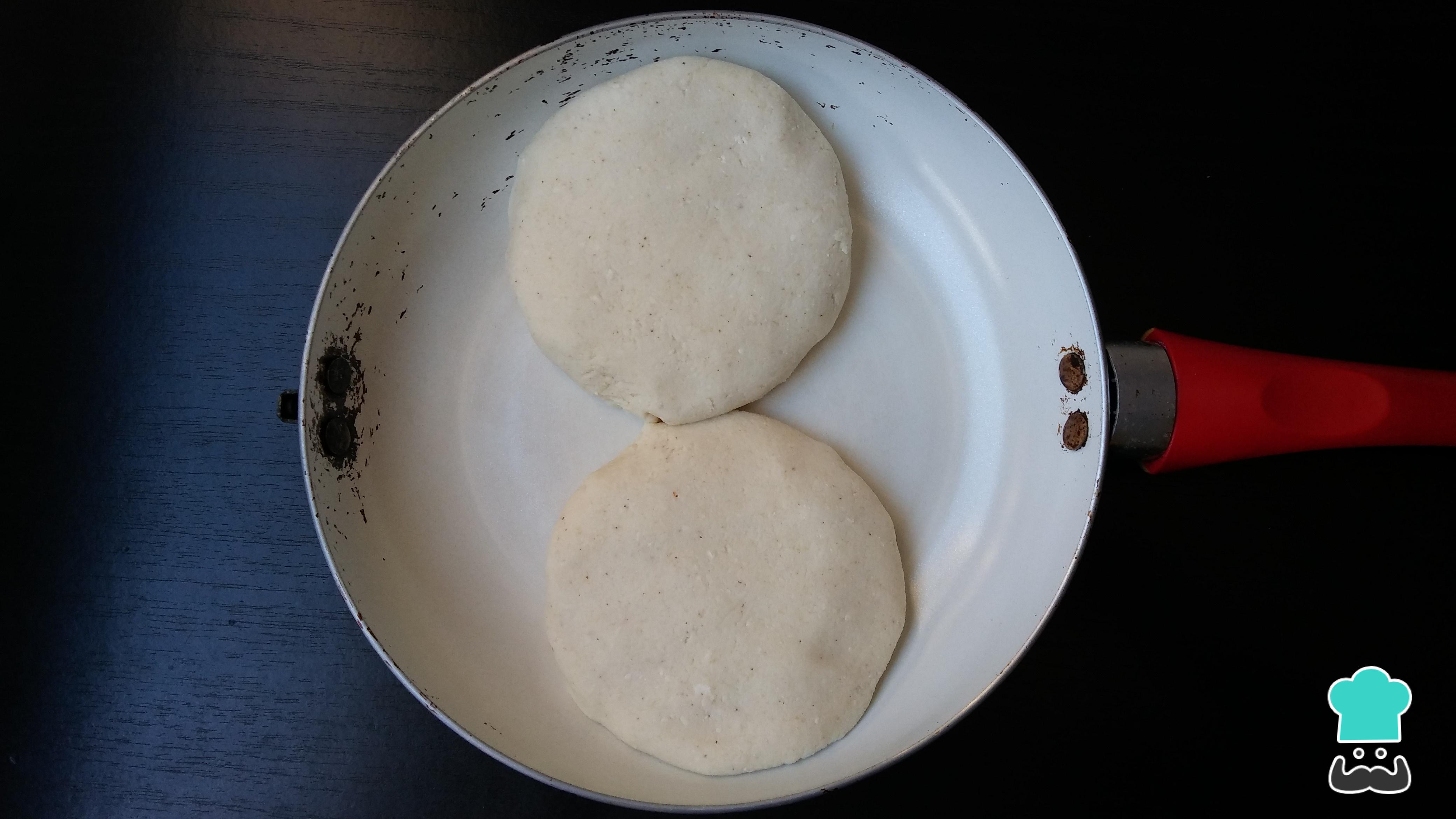 Precalienta una sartén, plancha o budare, coloca las arepas y cocina a fuego medio bajo. Espera 6 minutos y, una vez pasado ese tiempo, voltéalas para cocinar la otra cara durante 6 minutos más. Un truco para saber cuándo es el momento ideal para voltearlas es empujarlas muy levemente en uno de los bordes o por el centro. Si aun ofrecen resistencia, hay que dejarlas un poco más, pero si se deslizan fácilmente en la superficie de la sartén, entonces están listas.