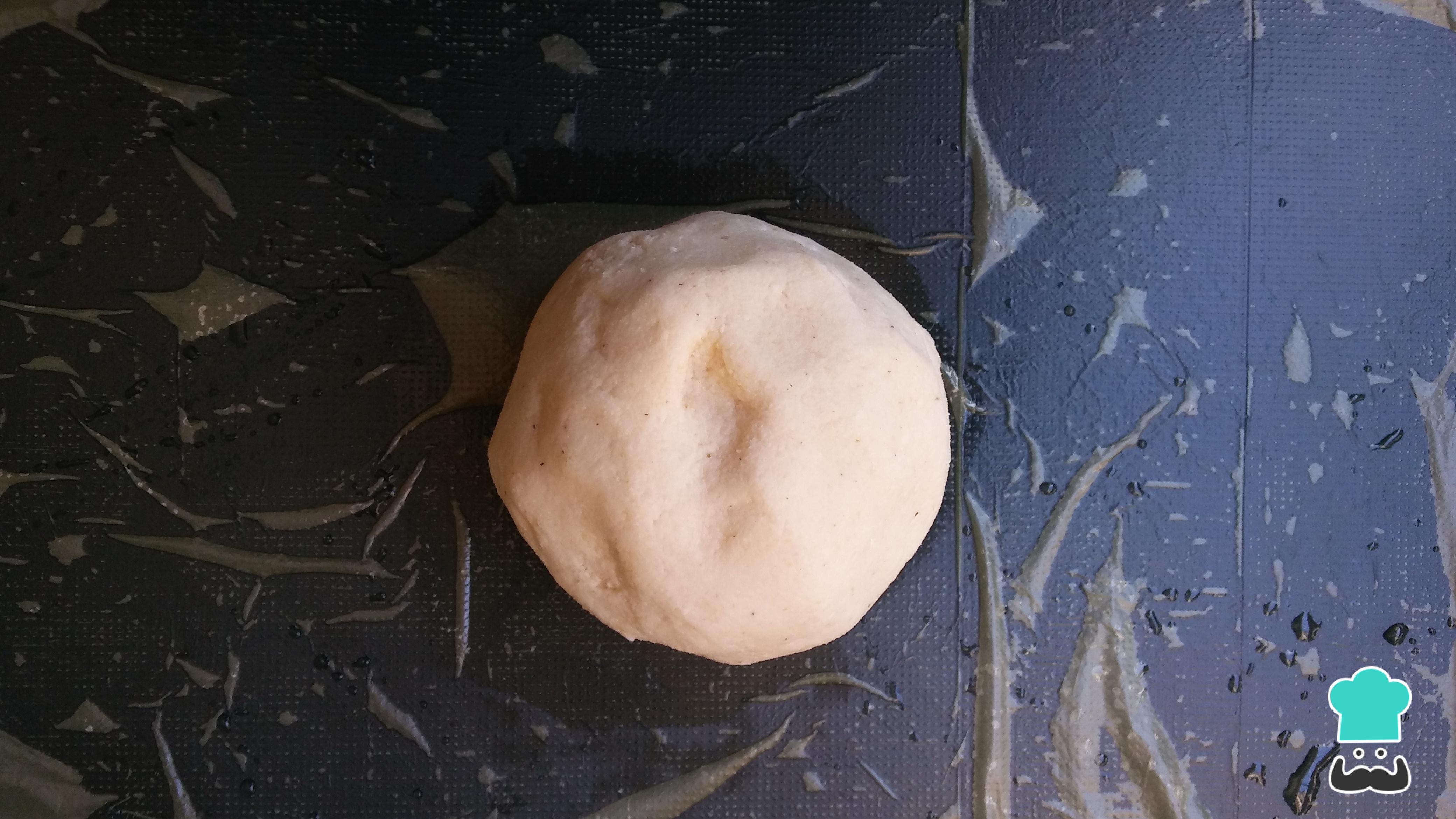 Usando la palma de tu mano, aplasta la bolita suavemente hasta conseguir un disco del grosor que más te apetezca. Corrige los bordes irregulares utilizando tus dedos.