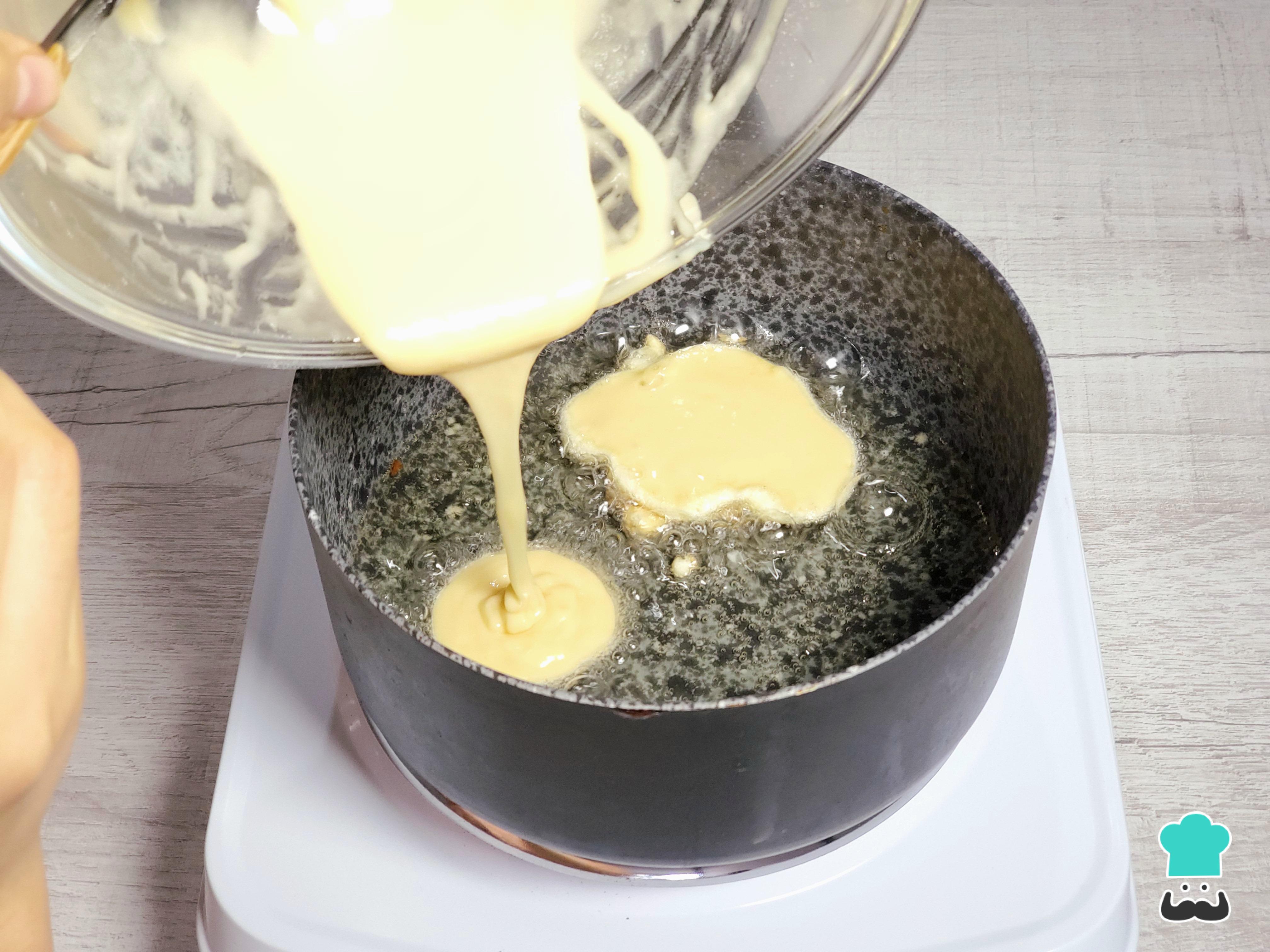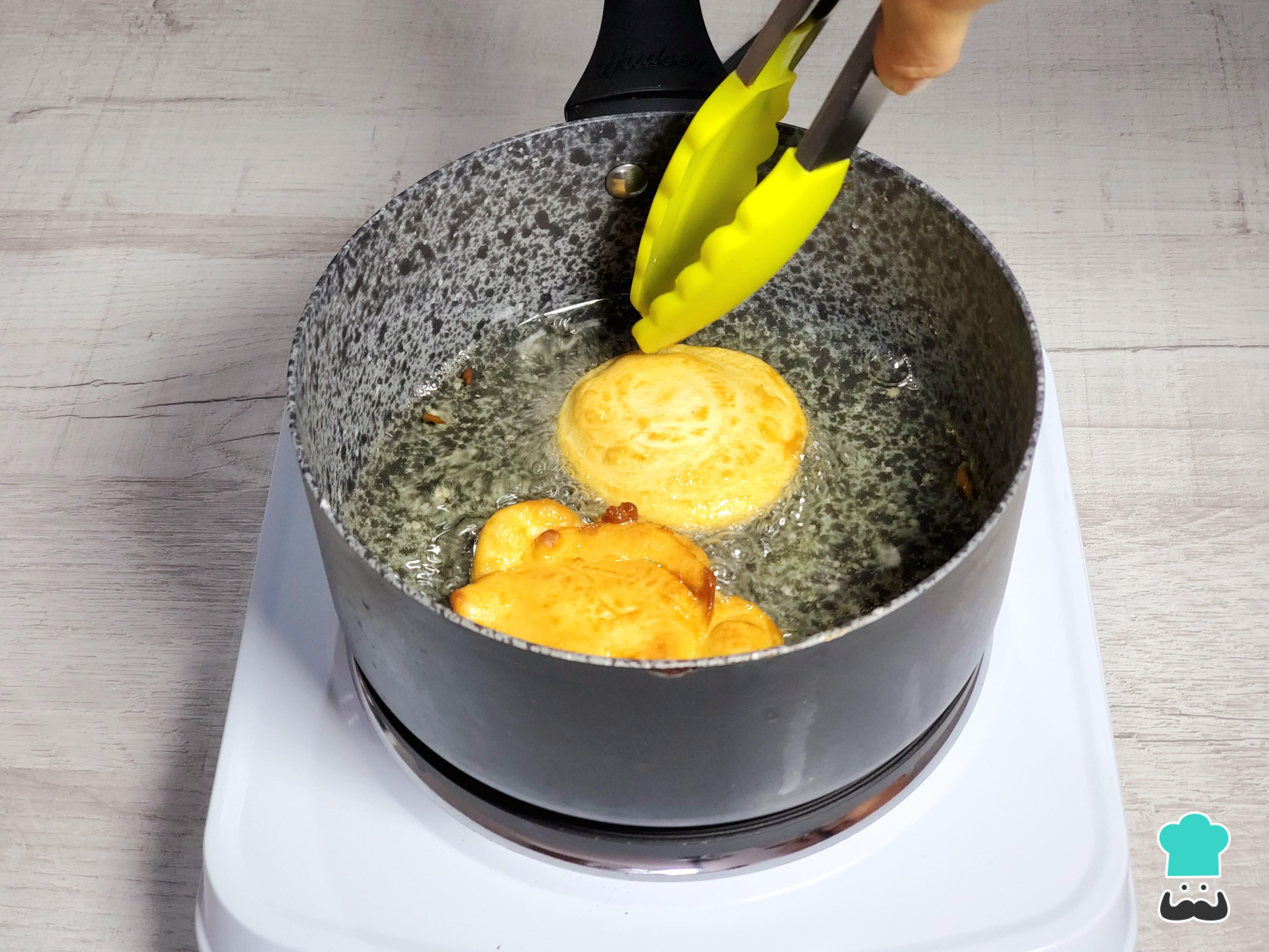 Repite el proceso hasta llenar la sartén con las masitas y deja que se doren. Luego, dales la vuelta con una espumadera o un tenedor para dorarlas por el otro lado.