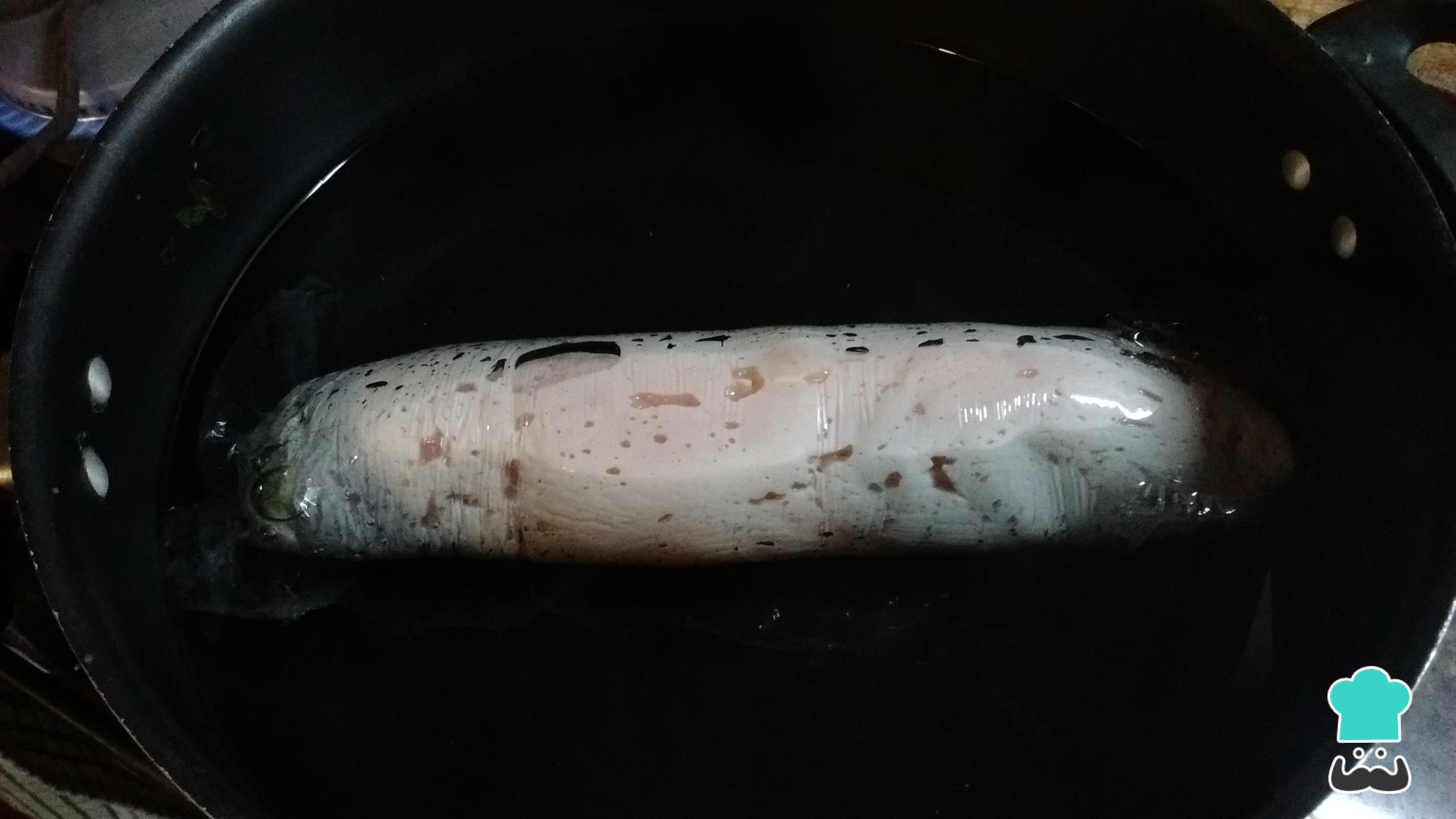 A continuación, debes colocar el arrollado de pollo con verduras en una cacerola con agua hirviendo y dejarlo cocinar por 25 minutos. El tiempo de cocción de un arrollado de pollo varía en función de donde lo cocines.