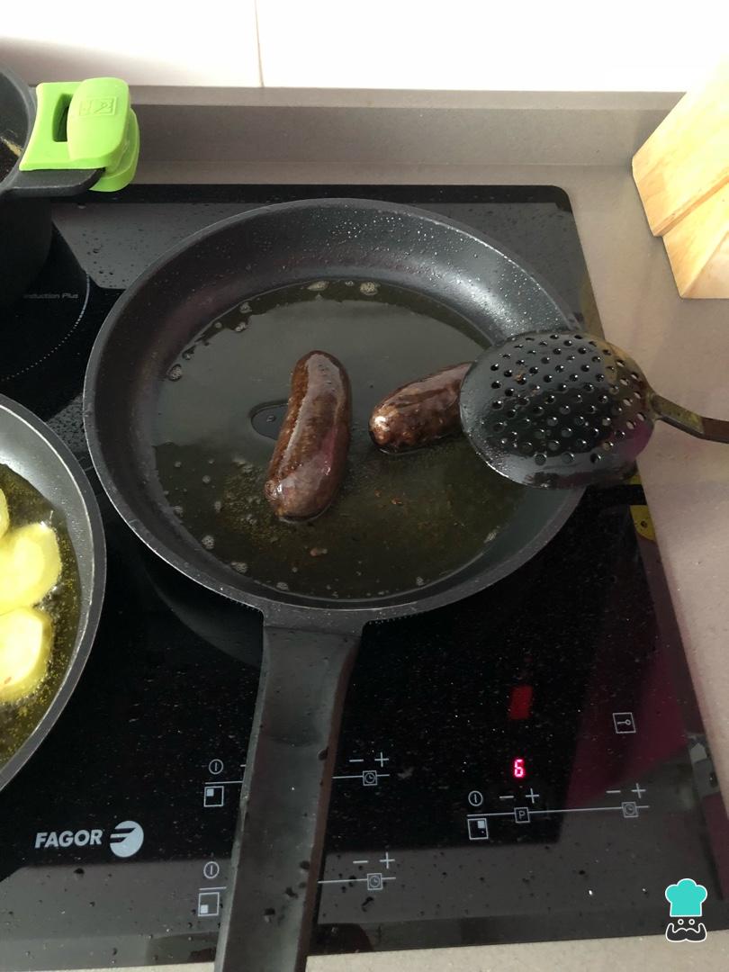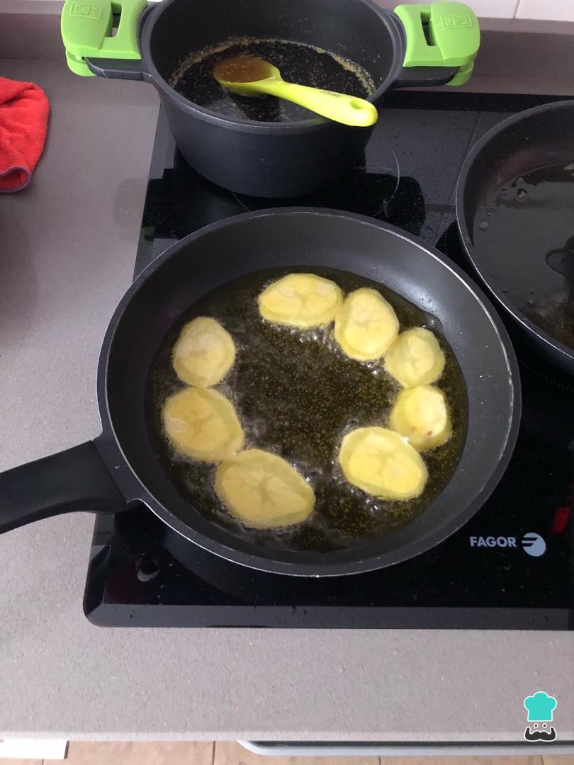 En otra sartén se fríe la patata hasta estar en su punto y también se deja apartada.