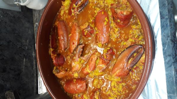 Ahora, debes remover para que se mezcle todo bien y desprenda los sabores. Por último, lo debes dejar cociendo durante 25 minutos sin remover. Cuando haya pasado el tiempo de cocción, reparte el bogavante por todo el arroz, para que así, los últimos 10 minutos se cueza todo junto.