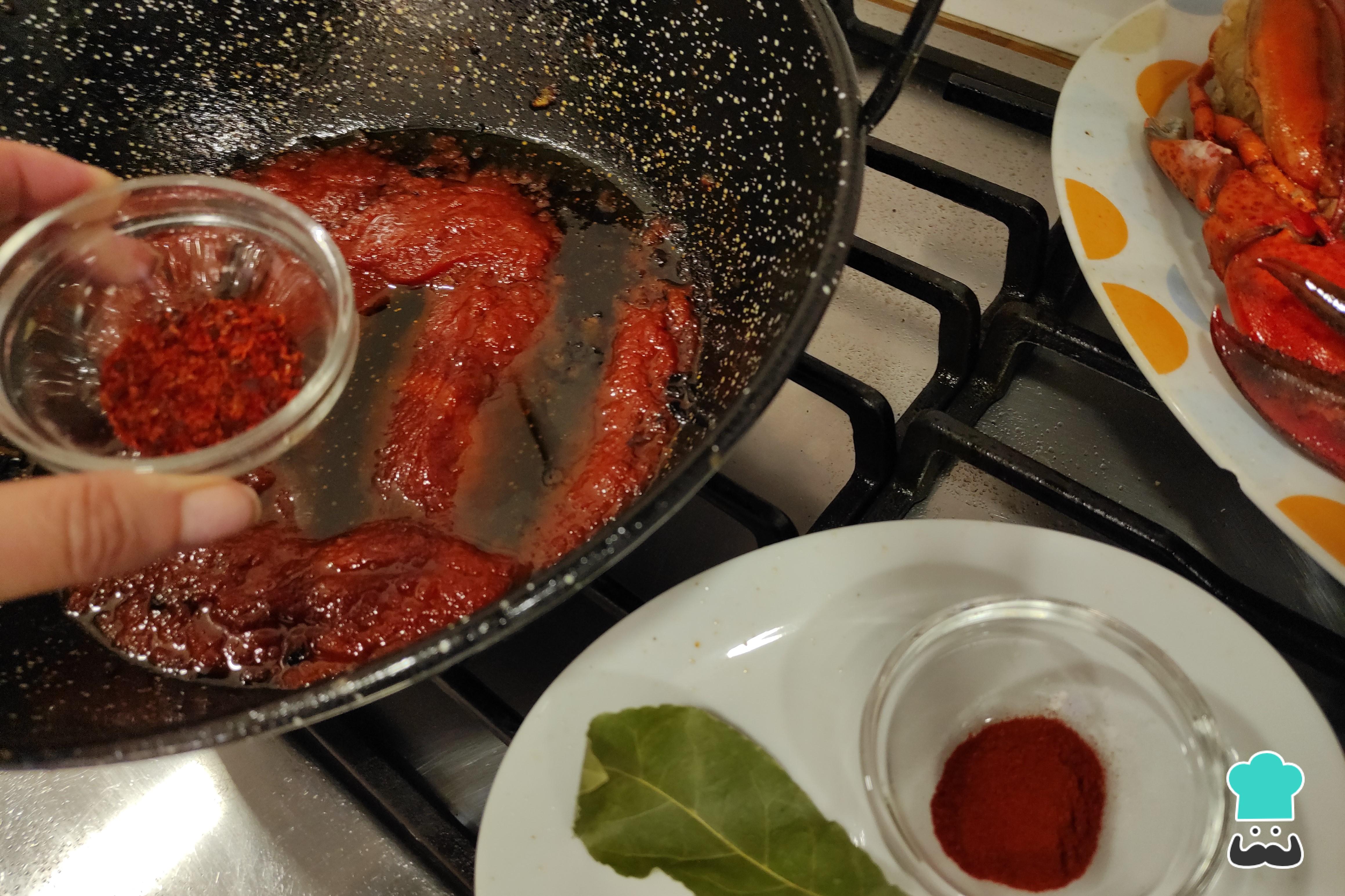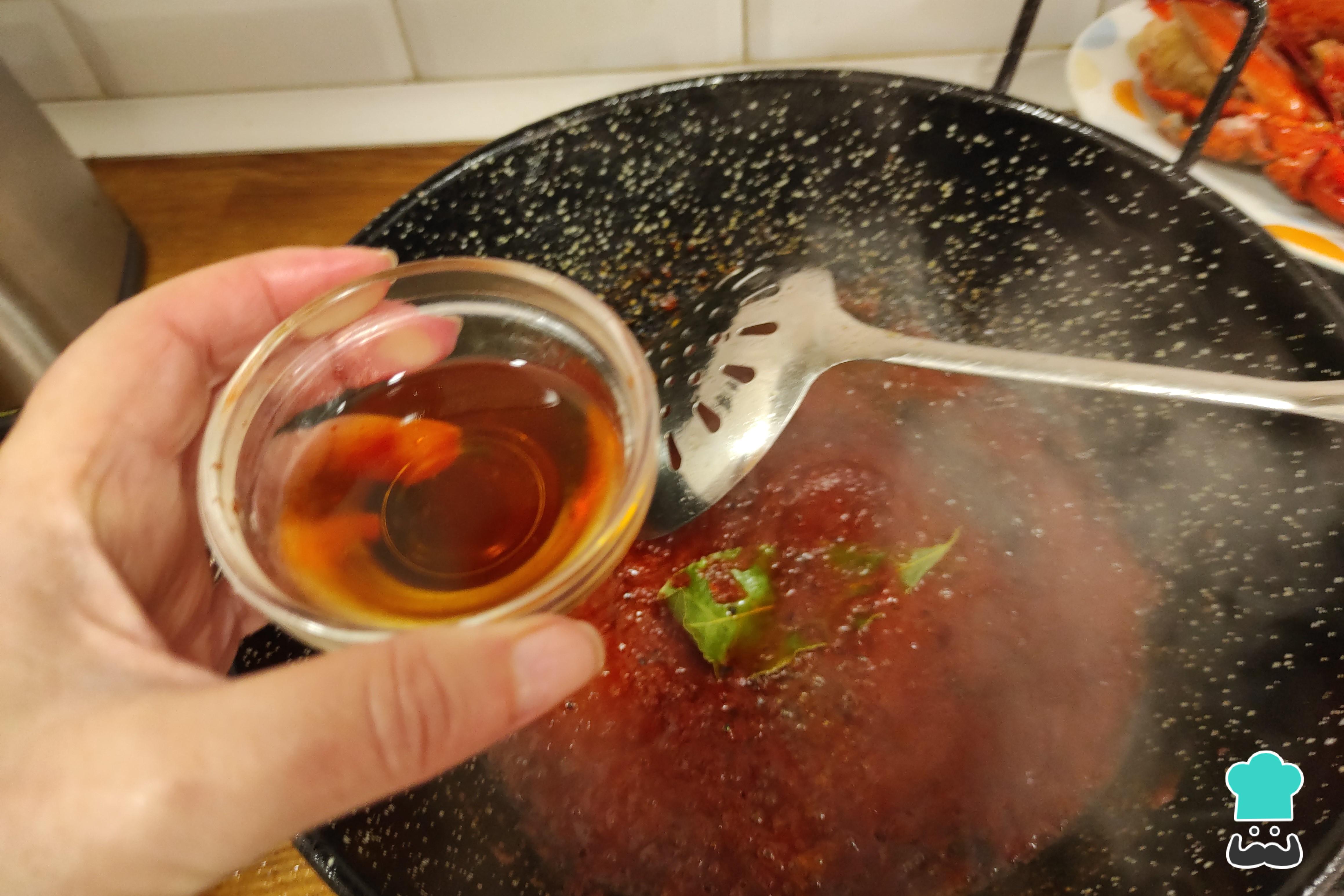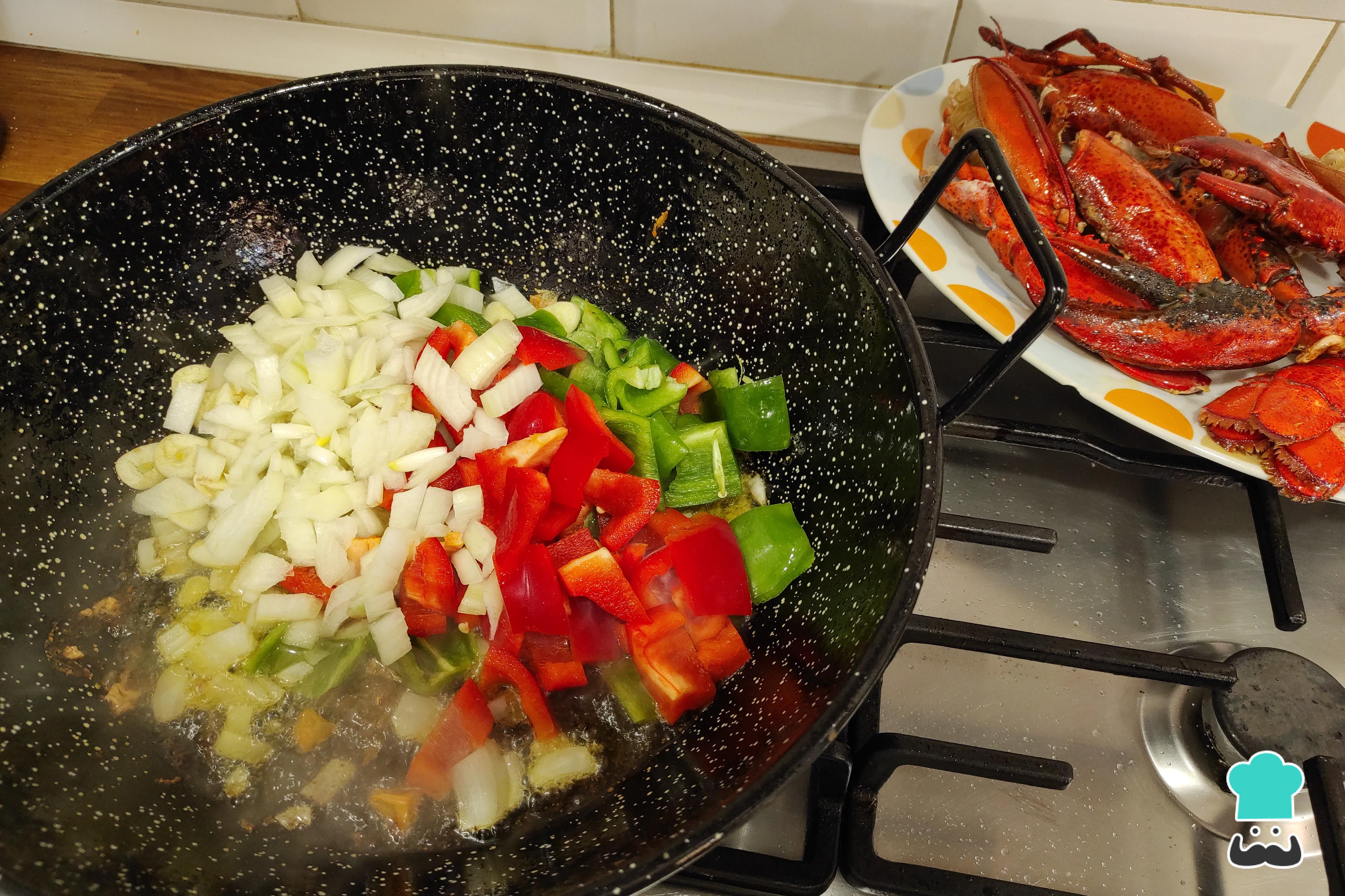 En una sartén honda, debes agregar un buen chorro de aceite de oliva y sofreír los trozos de bogavante. Simplemente, dale vueltas durante no más de dos minutos para que tome ese color rojizo. Por último, reserva.