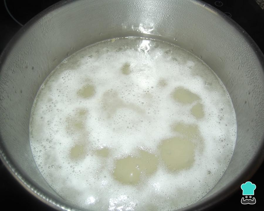 Pon la olla a hervir y, en cuanto alcance el punto de ebullición, incorpora la cucharada de vinagre y muévelo rápidamente pero sin excederte.