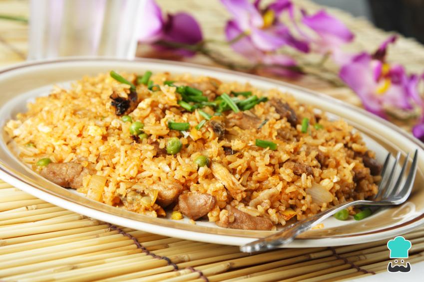 Es muy importante cocinar el arroz un día antes y guardarlo en la nevera para que nos quede con la textura y consistencia propia del arroz chino.