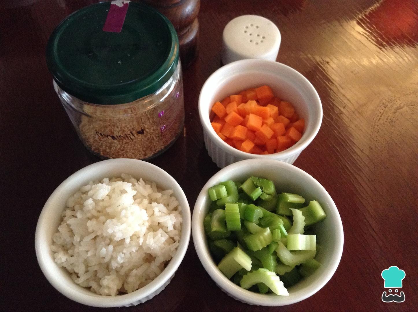 El primer paso para realizar la receta saludable es prealistar los ingredientes. Si quieres, puedes reemplazar el arroz blanco por arroz integral y obtener un producto más saludable.