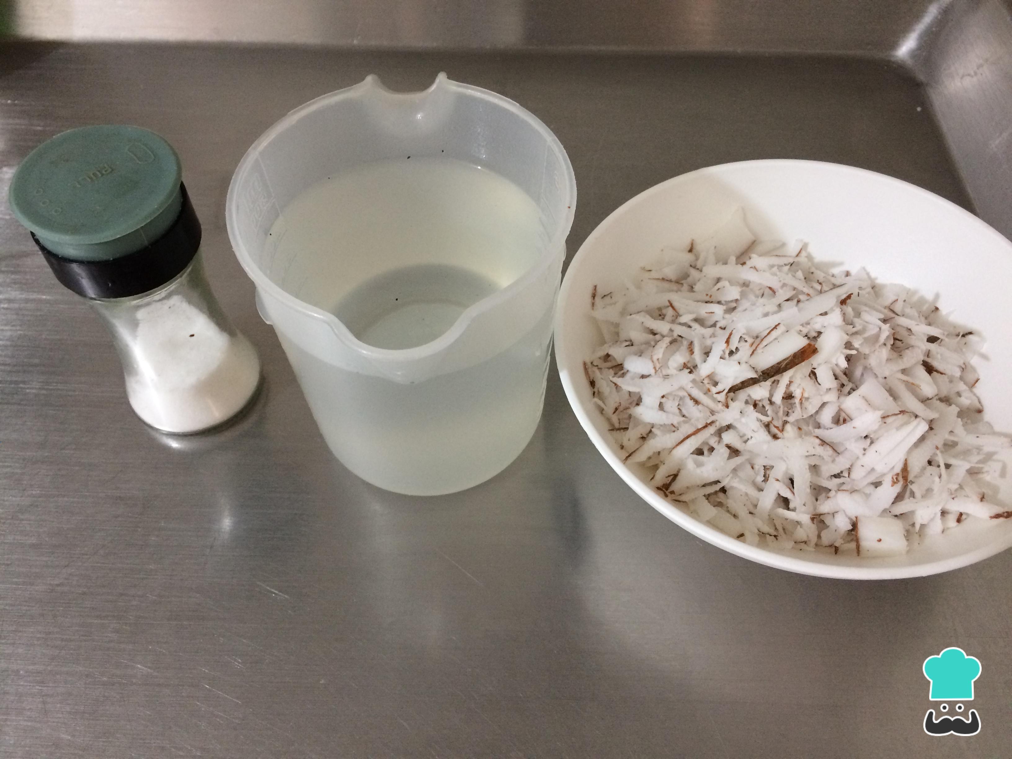 Antes de realizar esta receta, el primer paso es alistar todos los ingredientes. Ten en cuenta que para esta receta colombiana debes utilizar coco natural.