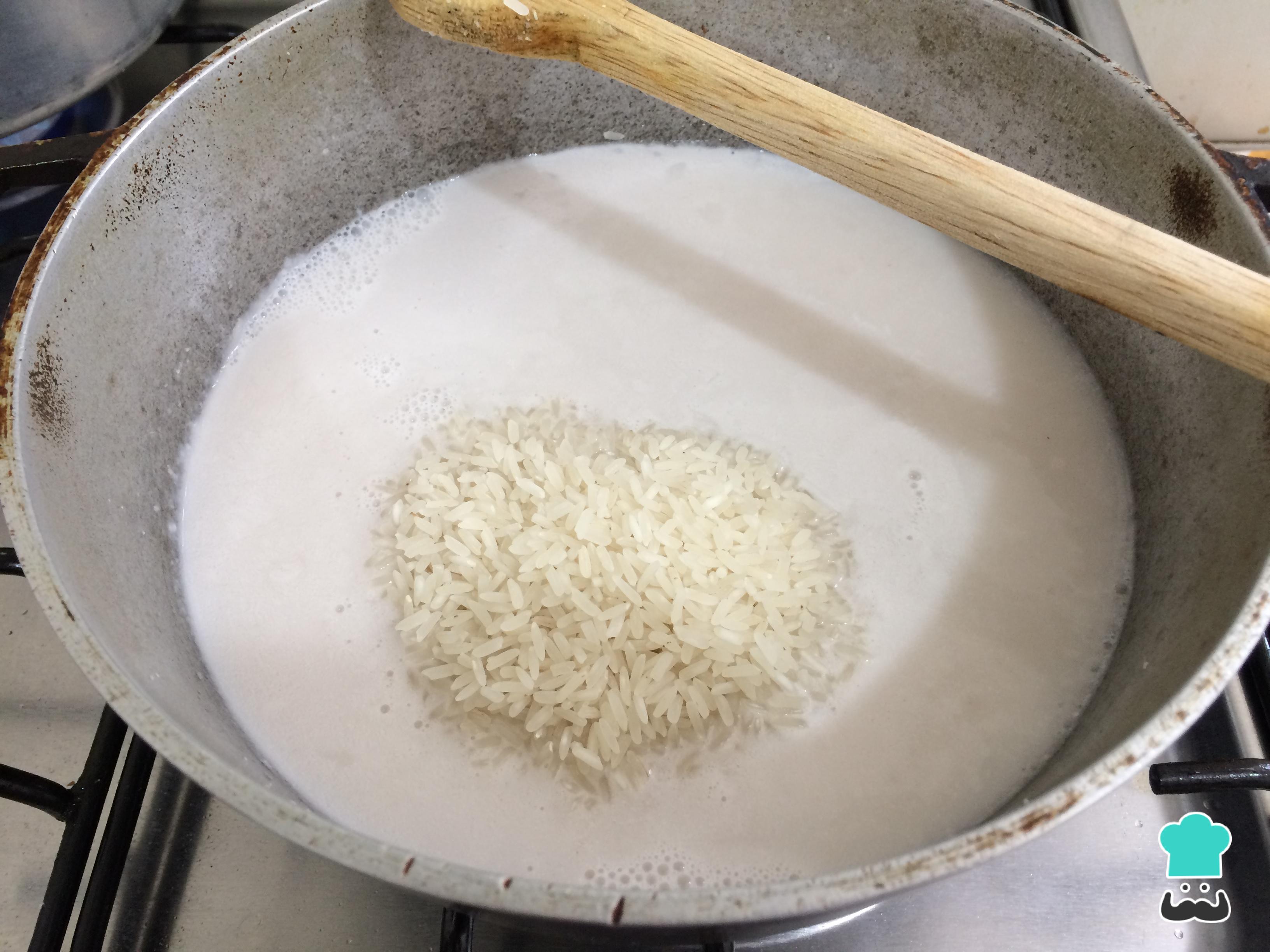 Hay que remojar el arroz? El agua de coco se utiliza para obtener la leche o no se utiliza?