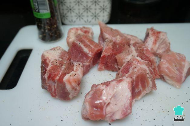 Para hacer el arroz con costillas de la abuela, primero limpia las costillas, pon sal y pimienta.