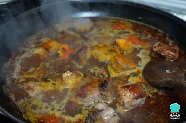Añade el caldo de carne ydeja que se cocine unos 15 minutos para que se haga bien la carne.