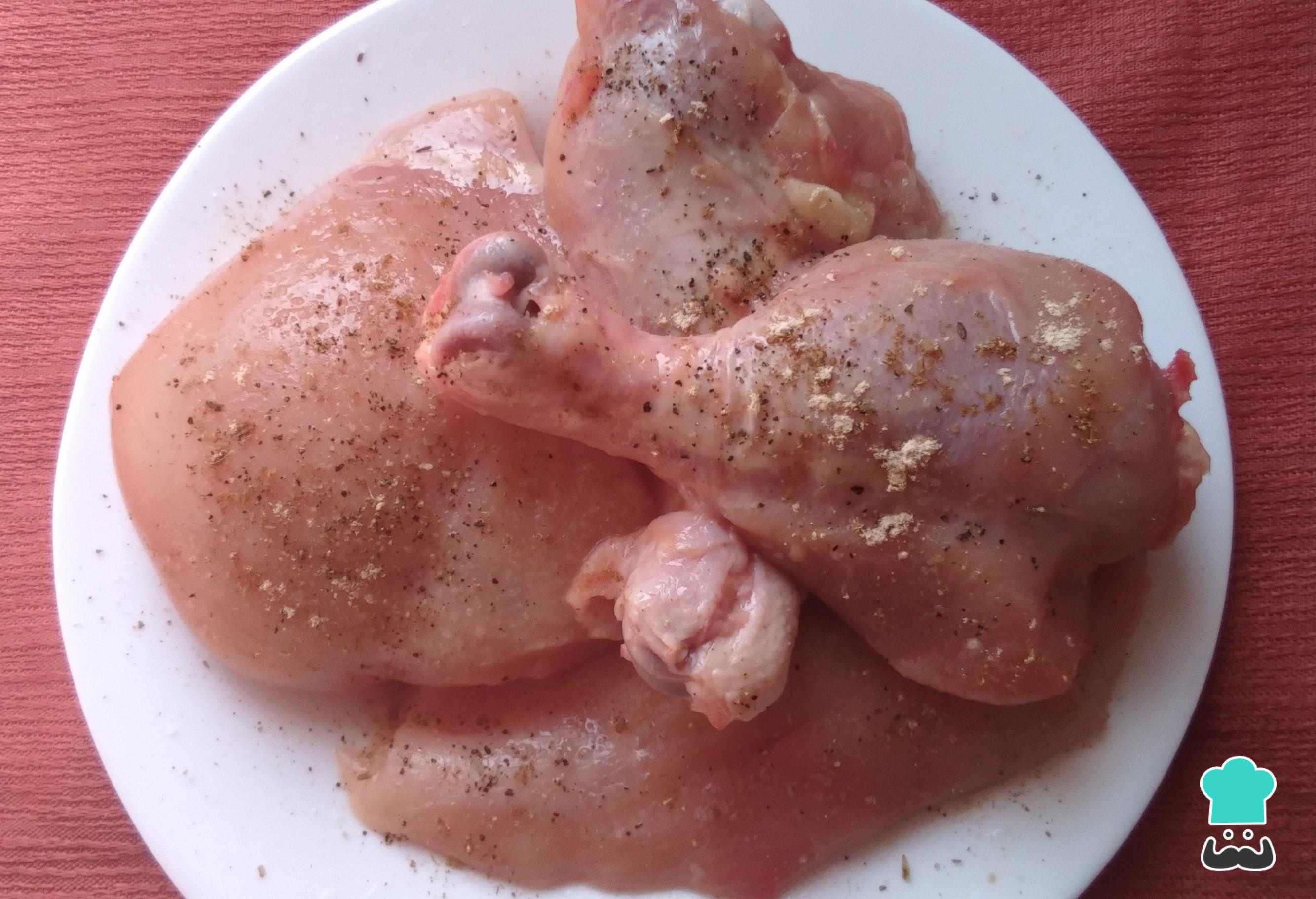 Para que el pollo con arroz al estilo panameño tenga bastante sabor, comienza por salpimentar y agregar especias a las piezas de pollo ya limpias. También puedes usar salsa de soya u otros saborizantes.