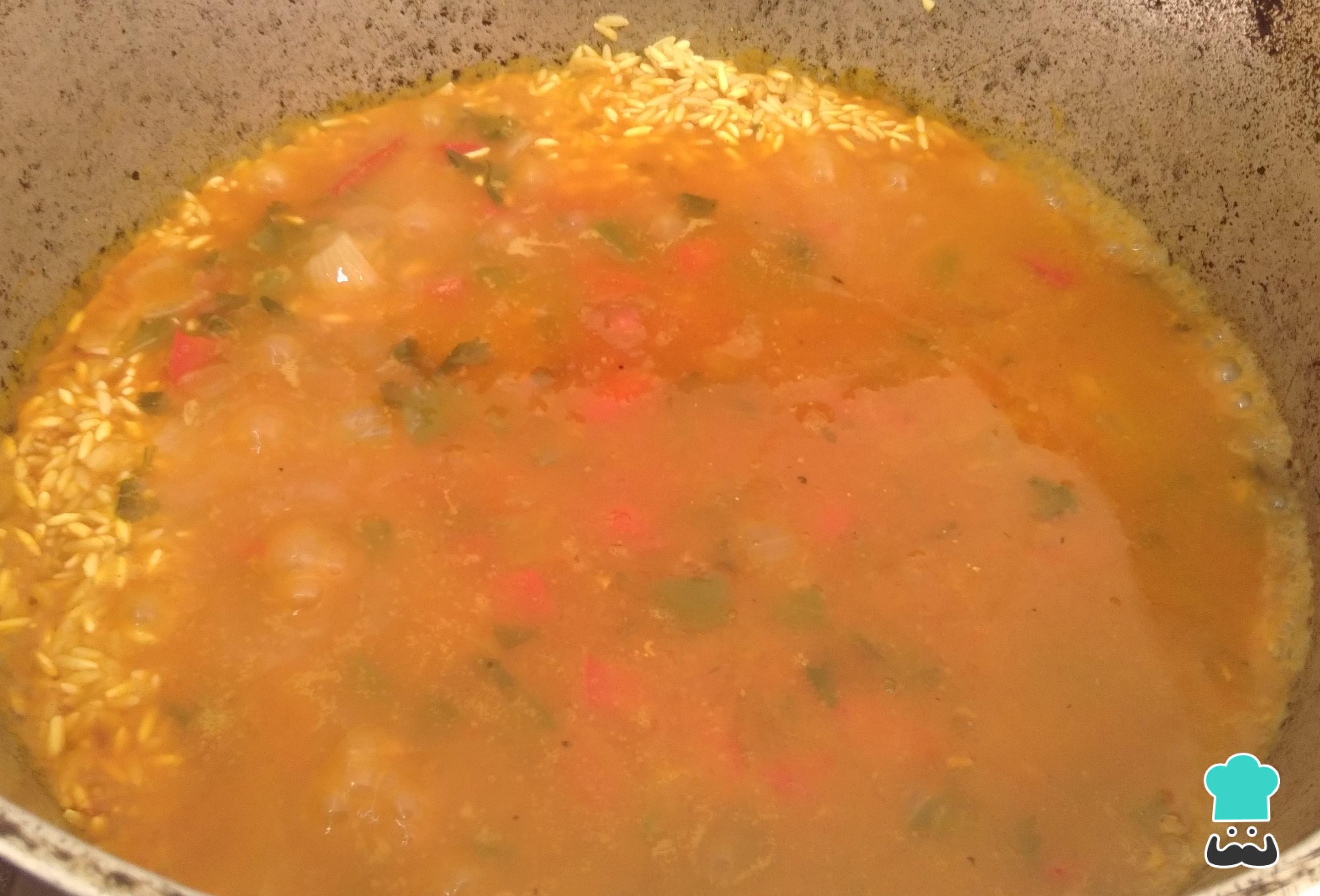 Primero se utilizan vegetales frescos picados en trozos pequeños; pimentones de color verdes o naranja o rojo, zanahoria, apio, cebolla. Los vegetales se cocinan en una sartén con gotas de aceite de oliva.