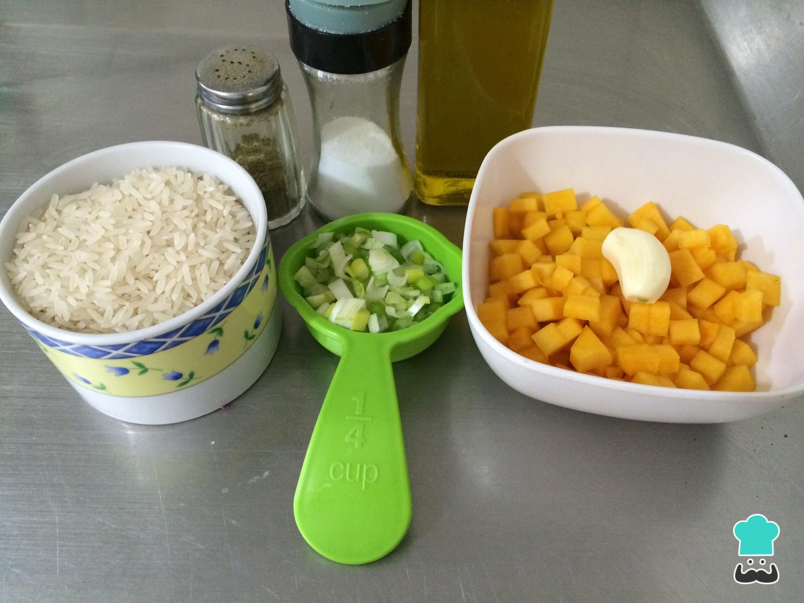 Antes de realizar la receta de arroz de calabaza, el primer paso es alistar todos los ingredientes.