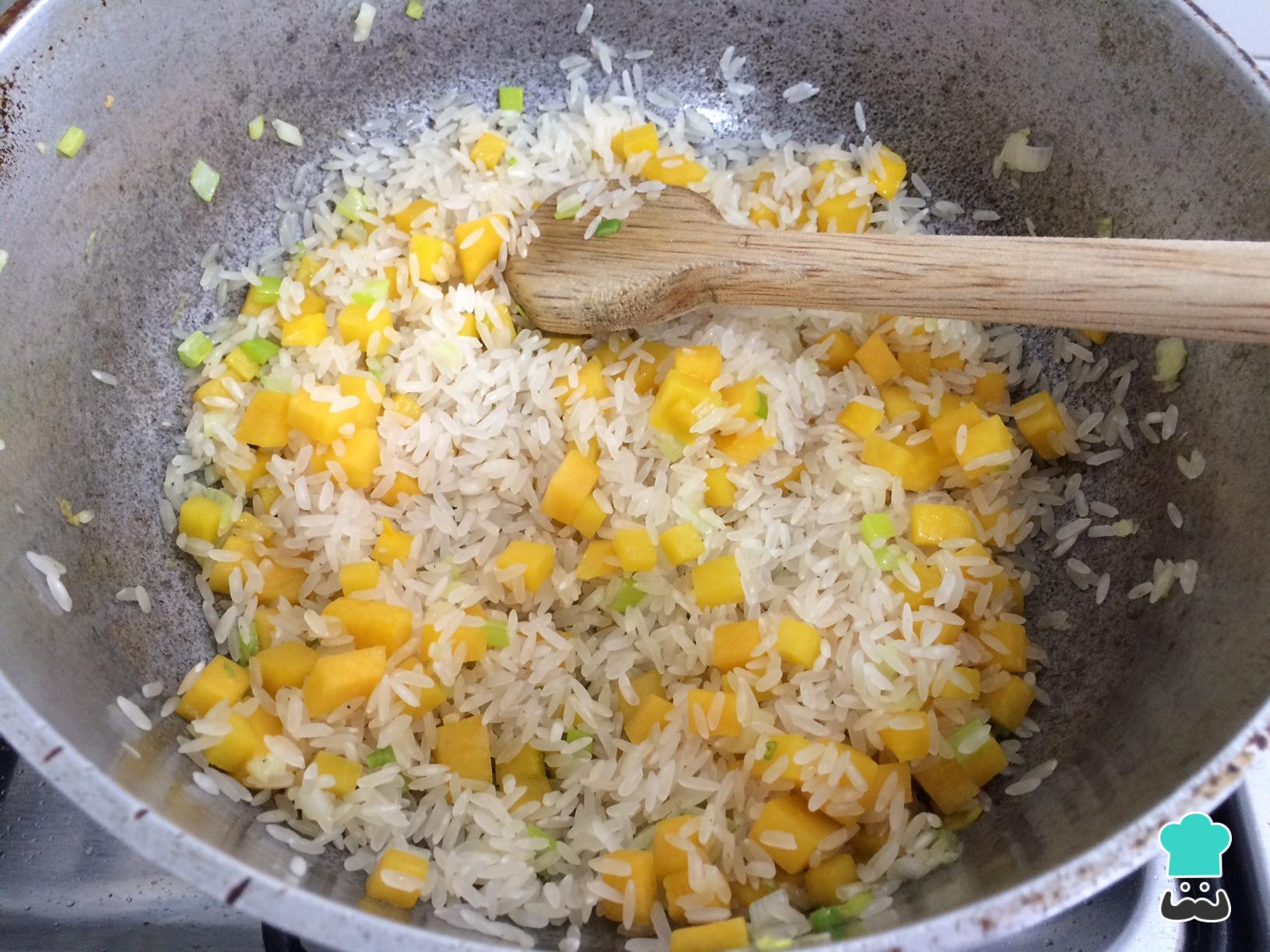 En esta receta aprenderemos a realizar un arroz de calabaza muy suelto y lleno de sabor que, además, es muy rápido y fácil de realizar. La calabaza es un vegetal que nos ofrece múltiples beneficios para la salud, entre los que destaca la capacidad para regular el tránsito intestinal por la cantidad de fibra que tiene. Además, no aporta muchas calorías por lo que es un alimento muy sano. Sigue leyendo y descubre en RecetasGratis.net los pasos para aprender a preparar esta receta de arroz.