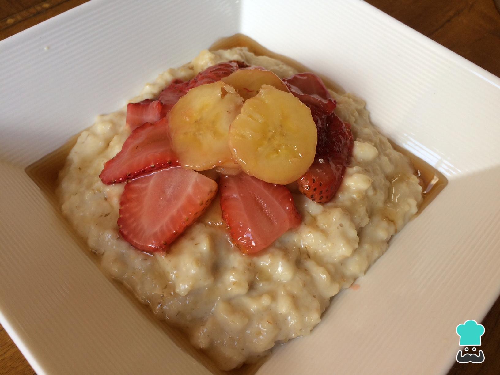 La avena es uno de los mejores alimentos para consumir a la hora del desayuno, pues este cereal nos aporta muchos nutrientes ideales para empezar el día. En esta receta aprenderemos a realizar avena cocida, acompañada con plátano (banano) y fresas caramelizadas, ¡te encantará! Así que no lo dudes más y ponte manos a la obra con RecetasGratis.net.