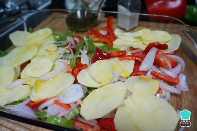 Para la realización de esta receta se puede utilizar bacalao desalado o fresco. Igualmente, las verduras se pueden modificar al gusto sin problema. En caso de querer utilizar pescado fresco, para desalarlo simplemente se debe lavar bien, colocar en un colador con la piel hacia arriba, introducir el colador con el bacalao en un recipiente lleno de agua y reservar en el frigorífico. Cada 6 horas se deberá cambiarse el agua, hasta alcanzar un total de 48 horas. Ahora que sabemos cómo desalar el bacalao, vamos a conocer cómo hacer bacalao al horno con verduras fácil y rápido.