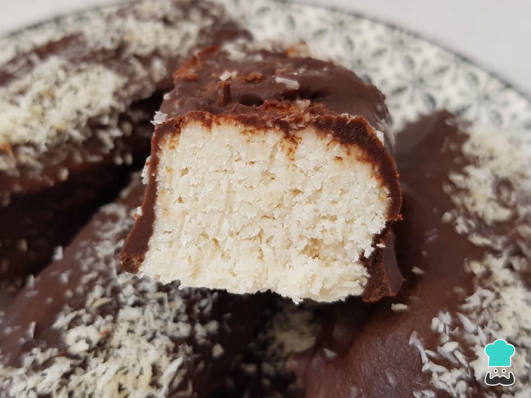 Con esta receta puedes preparar tus propias chocolatinas Bounty caseras y saludables. Es una receta vegana, es decir, no contiene lácteos ni ningún otro ingrediente de origen animal, y sin gluten. Vas a necesitar tan solo 5 ingredientes, de manera que se trata de una receta económica que, además, es muy rápida de hacer, sin tener en cuenta el tiempo de refrigeración. Cuanto más frías estén las barritas, mejor saben, por tanto puedes congelarlas si quieres. Sigue leyendo y descubre en RecetasGratis cómo hacer barritas de coco veganas estilo Bounty.