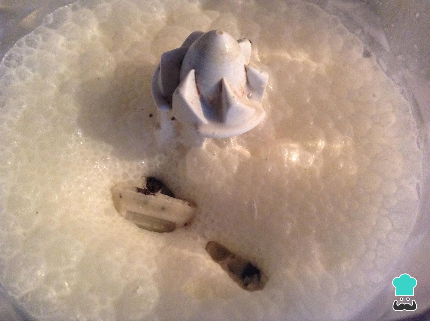 Agrega la crema de leche y la esencia de vainilla y sigue procesando hasta integrar por completo los ingredientes.