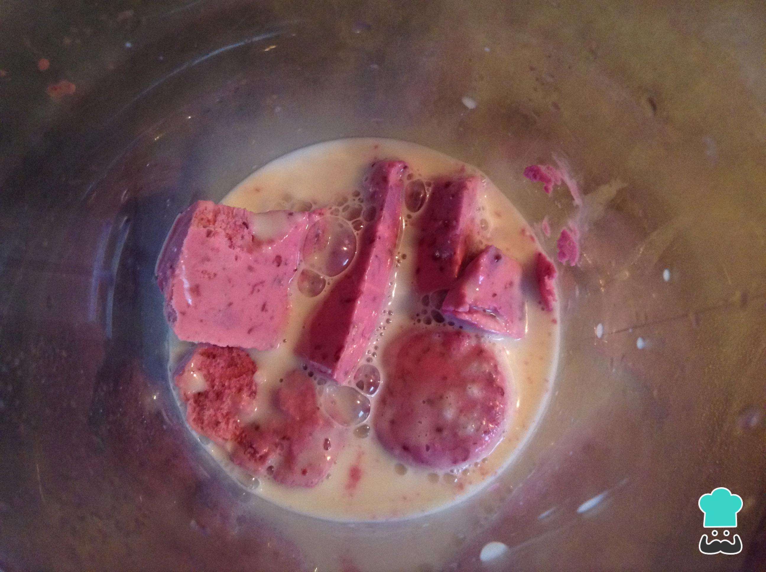En un bowl adicionar el helado y la leche.Procesar con un mixer o una licuadora.